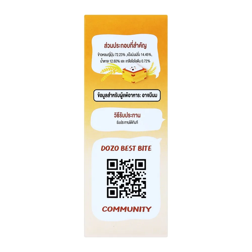 <p>โดโซะ เบสไบท์ ข้าวหอมญี่ปุ่นอบกรอบสำหรับเด็ก<br /><br />โดโซะ เบสไบท์ ข้าวหอมญี่ปุ่นอบกรอบสำหรับเด็ก ผลิตจากวัตถุดิบคุณภาพดี เต็มไปด้วยคุณประโยชน์มากมาย ผลิตจากข้าวญี่ปุ่นพันธุ์ดี ผ่านการอบไม่ทอด จึงดีต่อสุขภาพลูกน้อยและช่วยฝึกทักษะในการเคี้ยวบดอาหารของเด็ก<br /><br /> - โดโซะ เบสไบท์ ข้าวหอมญี่ปุ่นอบกรอบสำหรับเด็ก<br /> - อร่อย หอม รสชาติดี<br />- ผลิตจากข้าวญี่ปุ่นพันธุ์ดี ผ่านการอบไม่ทอด จึงดีต่อสุขภาพลูกน้อย<br /> - ฝึกทักษะในการเคี้ยวบดอาหารของเด็ก<br /> - เหมาะสำหรับเด็กอายุ 6 เดือน - 3 ปี<br /><br /><br />*ภาพประกอบใช้เพื่อการโฆษณาเท่านั้น</p>
