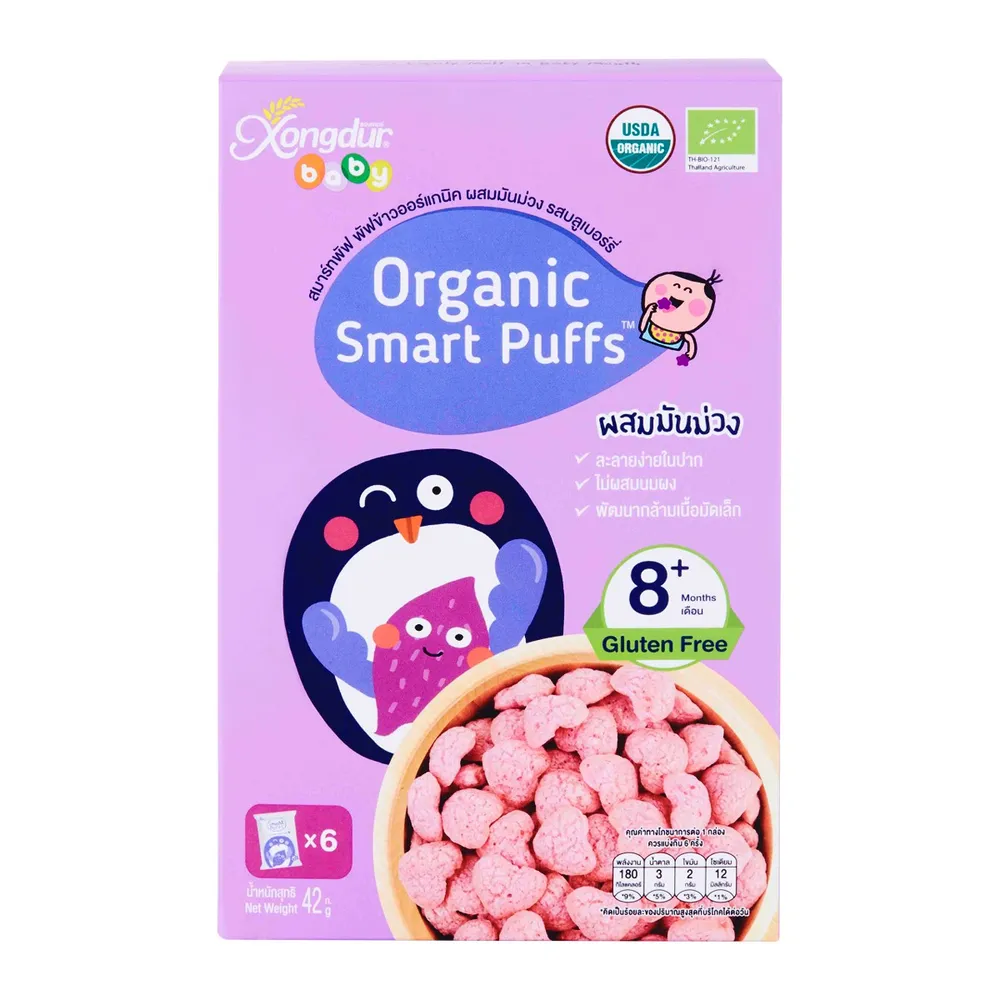 สมาร์ทพัฟ ข้าวออร์แกนิคอบกรอบผสมมันม่วง รสบลูเบอร์รี่ 42 ก.