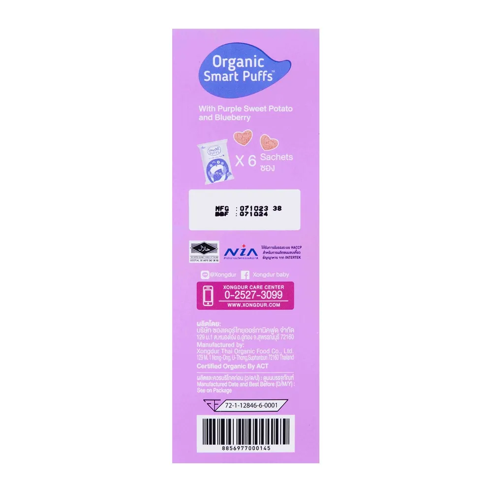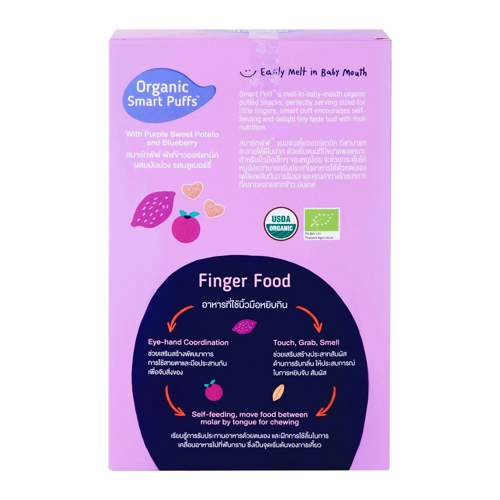 <p>สมาร์ทพัฟ ข้าวออร์แกนิคอบกรอบผสมมันม่วง รสบลูเบอร์รี่<br />