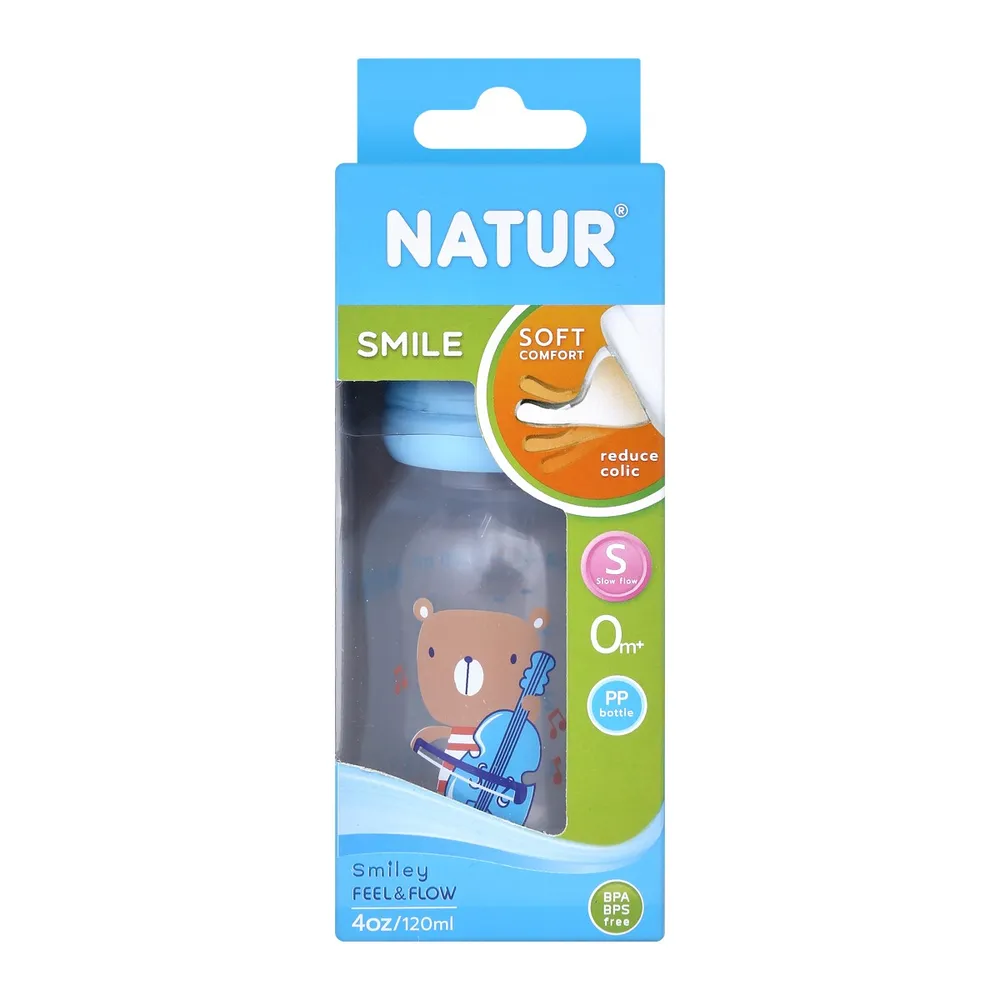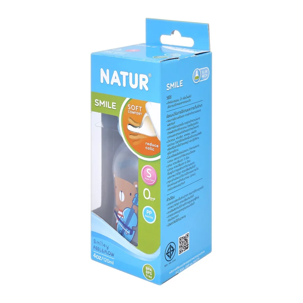 ให้ลูกน้อยดื่มนมได้ถนัดมือด้วยขวดนม ทรงถั่ว ขนาด 4 ออนซ์จากเนเจอร์ ผลิตจากโพลิโพรพิลีน ทนความร้อนได้ 100 องศาเซลเซียส ใต้ฐานจุกนมมีระบบไหลเวียนอากาศ 3 ทิศทาง ช่วยให้ลูกน้อยดูดสบาย ลดโอกาสท้องอืด ใช้ได้กับเด็กแรกเกิดเป็นต้นไป<br />