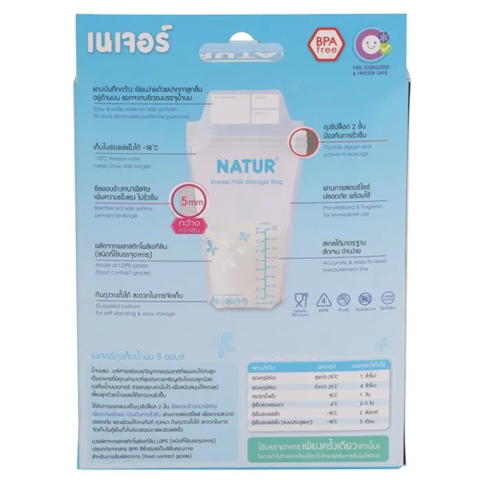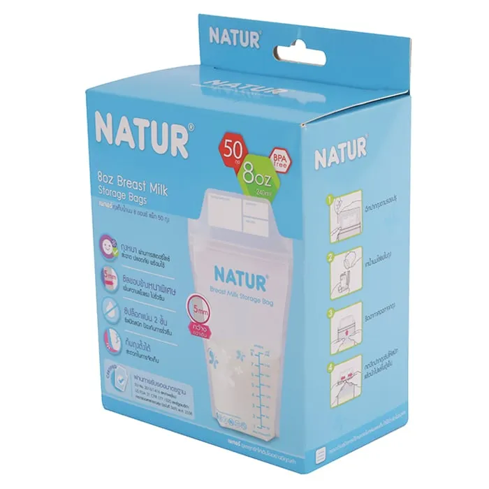 <p>เนเจอร์ ถุงเก็บน้ำนมแม่ แพ็ค 50 ถุง<br /><br />ตัวช่วยสำหรับคุณแม่ เพื่อให้ลูกน้อยได้ดื่มน้ำนมที่มีคุณค่าทุกที่ ทุกโอกาส เพียงใช้ถุงเก็บน้ำนมแม่จาก เนเจอร์ ถุงซิปล็อค 2 ชั้น เพื่อการกักเก็บที่มีคุณภาพสูงสุด ไม่ว่าคุณแม่จะไม่มีเวลา หรือมีน้ำนมปริมาณมาก ก็สามารถเก็บไว้ได้ทั้งหมด โดยไม่เสียคุณค่าดั้งเดิม<br /><br />- ถุงทำจาก&nbsp;LDPE เกรดสำหรับอาหาร ไม่มีสาร BPA<br />- 1 ถุงสามารถบรรจุน้ำนมได้ 8 ออนซ์ (240 มล.)<br />- ถุงสามารถเก็บไว้ได้ทั้งในช่องแช่เย็นปกติ และ ช่องฟรีซ<br />- มีแถบสีสำหรับเขียนชื่อ วันที่ และเวลา <br />- สามารถรักษาคุณค่าของน้ำนมแม่ไว้ได้อย่างครบถ้วน<br /><br />