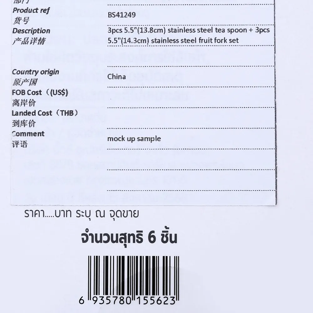- ช้อนชาขนาด 5.5 นิ้ว / ส้อมจิ้มผลไม้ขนาด 5.5 นิ้ว<br />