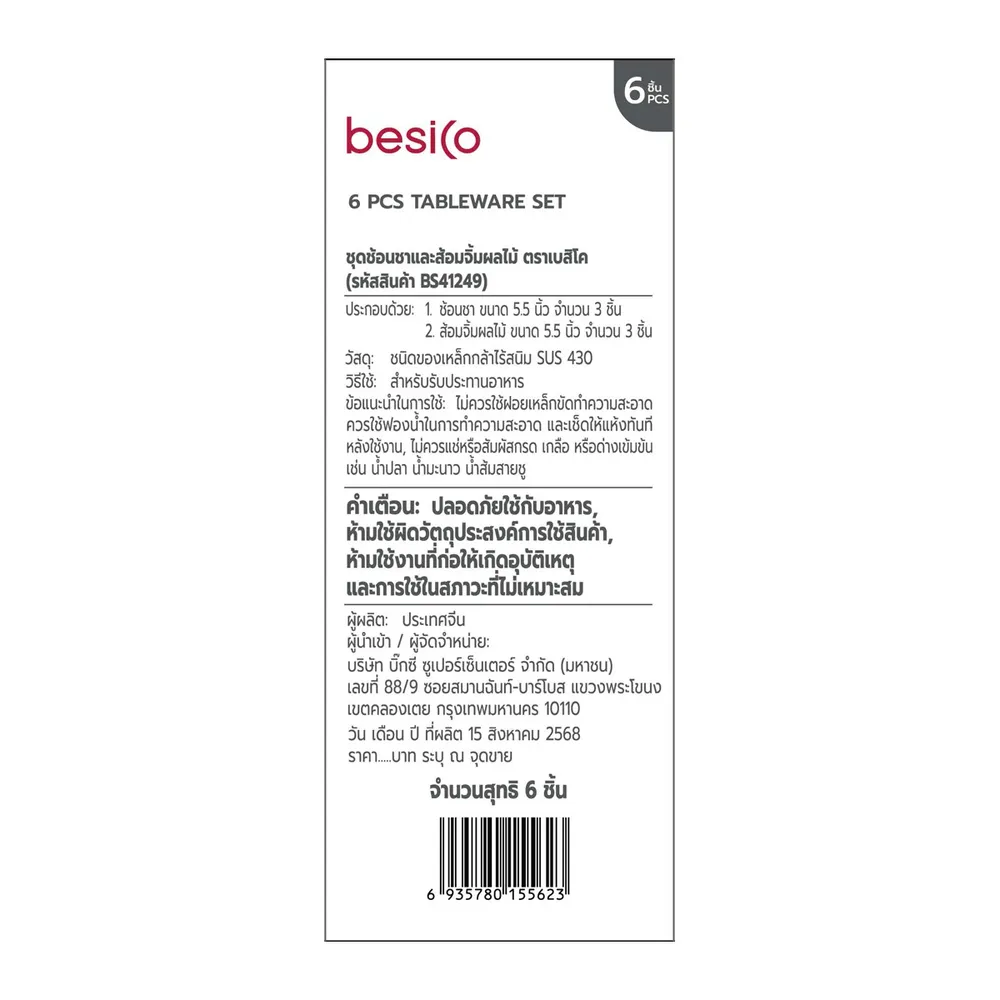 เบสิโค ชุดช้อนชาและส้อมจิ้มผลไม้ รุ่น BS41249 แพ็ค 6 สีเงิน