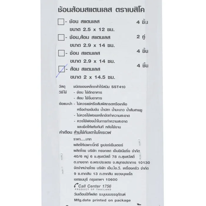 เบสิโค ส้อมสแตนเลส ขนาด 2 x 14.5 ซม. แพ็ค 4