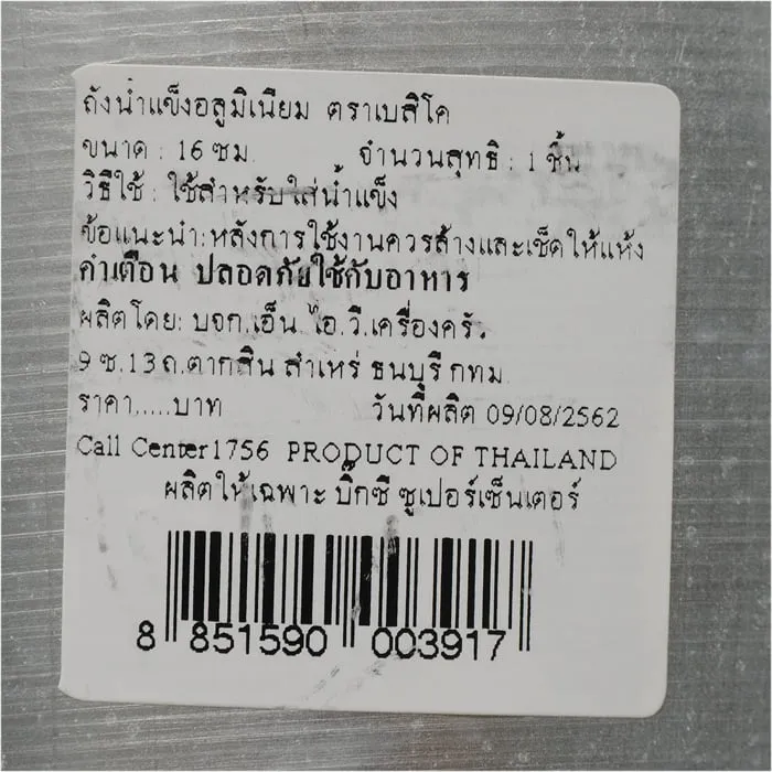<p>เบสิโค ถังน้ำแข็งอลูมิเนียม ขนาด 16 ซม.<br /><br />ถังน้ำแข็งอลูมิเนียมคุณภาพดี จากแบรนด์เบสิโค ถังน้ำแข็งที่คุณไม่ควรพลาด โดยเฉพาะนักดื่มที่มักจะขาดน้ำแข็งไปไม่ได้ ผลิตจากวัสดุอลูมิเนียมคุณภาพดี แข็งแรงทนทานต่อการใช้งาน มาพร้อมหูหิ้วจับถนัดมือที่แข็งแรงทนทานไม่แพ้กัน<br /><br />- ถังน้ำแข็งอลูมิเนียม ขนาด 16 ซม. คุณภาพดี<br />- ผลิตจากวัสดุอลูมิเนียมคุณภาพดี <br />- แข็งแรงทนทาน ใช้งานได้ยาวนาน<br />- ตัวถังขนาดกำลังดีบรรจุน้ำแข็งได้ดีเยี่ยม <br />- มาพร้อมหูหิ้วจับถนัดมือ เคลื่อนย้ายสะดวก<br /><br />*ภาพประกอบใช้เพื่อการโฆษณาเท่านั้น</p>
