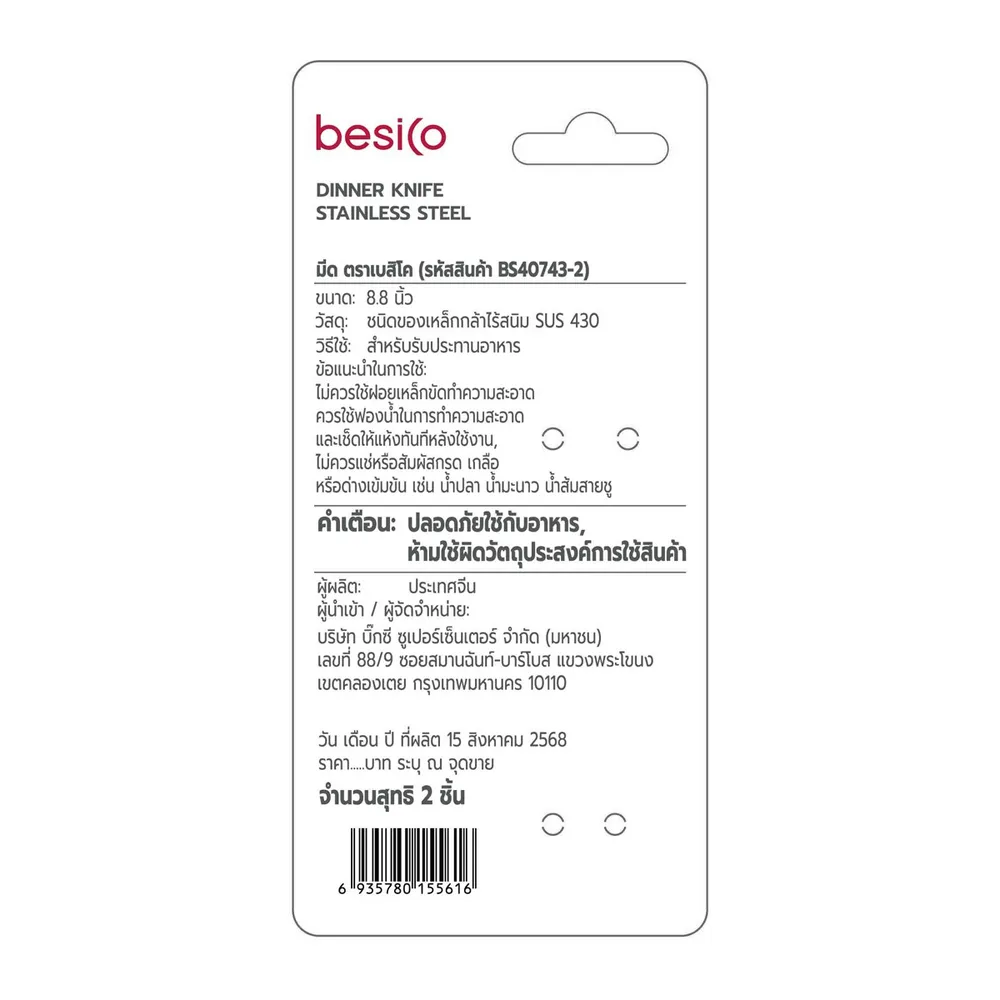 เบสิโค มีด รุ่น BS40743-2 แพ็ค 2 สีเงิน