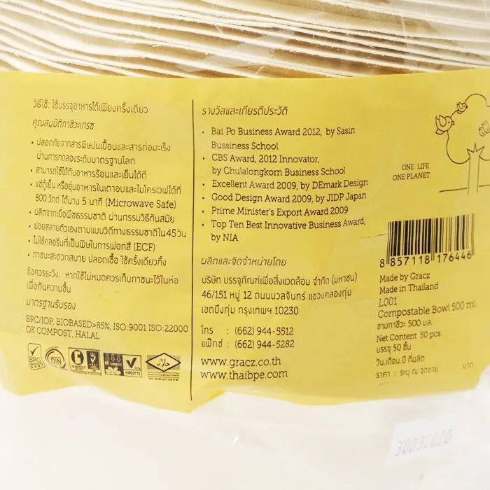 <p>เกรซ ชามภาชีวะ 500 มล.<br /><br />เกรซ ชามภาชีวะ ขนาดบรรจุ 500 มล.&nbsp;ภาชนะเพื่อชีวิตที่ยืนยาว ผลิตจากเยื่อพืชธรรมชาติ โดยเป็นบรรจุภัณฑ์จากเยื่อชานอ้อยผสมเยื่อไผ่ มีสีครีมจากสีธรรมชาติของเยื่อไผ่ สามารถนำมาอุ่นอาหารในไมโครเวฟได้ ปลอดภัยไร้สารก่อมะเร็ง ใส่อาหารได้ทั้งร้อนและเย็นโดยไม่รั่วซึม ที่สำคัญยังย่อยสลายได้ภายใน 6 สัปดาห์<br /><br />- ผลิตจากเยื่อชานอ้อยผสมเยื่อไผ่<br />- ใช้กับไมโครเวฟและเตาอบได้<br />- ใส่อาหารร้อนเย็นได้ไม่รั่วซึม<br />- ย่อยสลายได้ภายใน 6 สัปดาห์<br />- ปลอดภัยกับสุขภาพและดีต่อสิ่งแวดล้อม<br /><br />*ภาพประกอบใช้เพื่อการโฆษณาเท่านั้น</p>