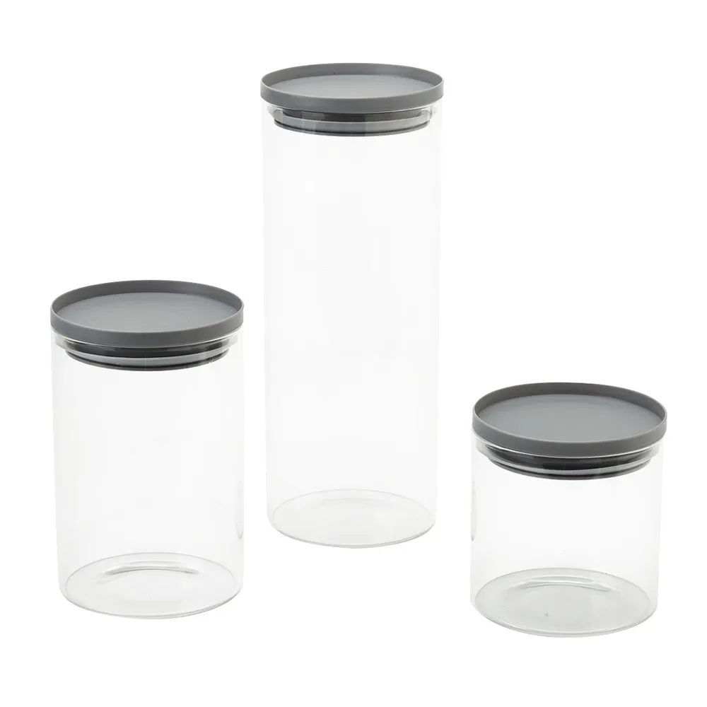 Glass Storage Jar 3 pcs. Set with PP Lid<br />
