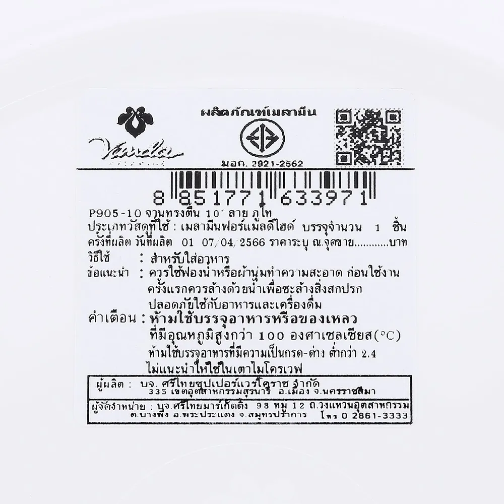 ซุปเปอร์แวร์ จานทรงตื้นลายภูไท รุ่น P905 ขนาด 10 นิ้ว
