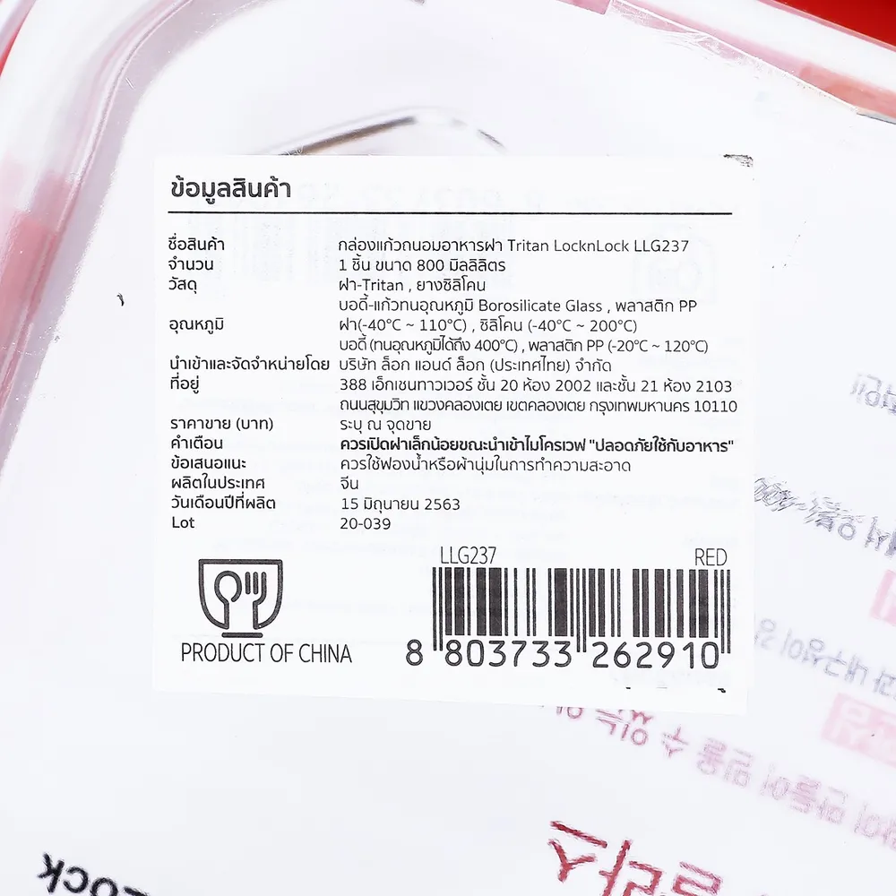 ล็อกแอนด์ล็อก กล่องแก้วถนอมอาหาร + ฝา Tritan รุ่น LLG237 800 มล.