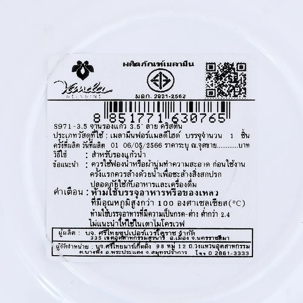 - จานรองแก้วเมลามีนฟอร์แมลดีไฮด์<br />