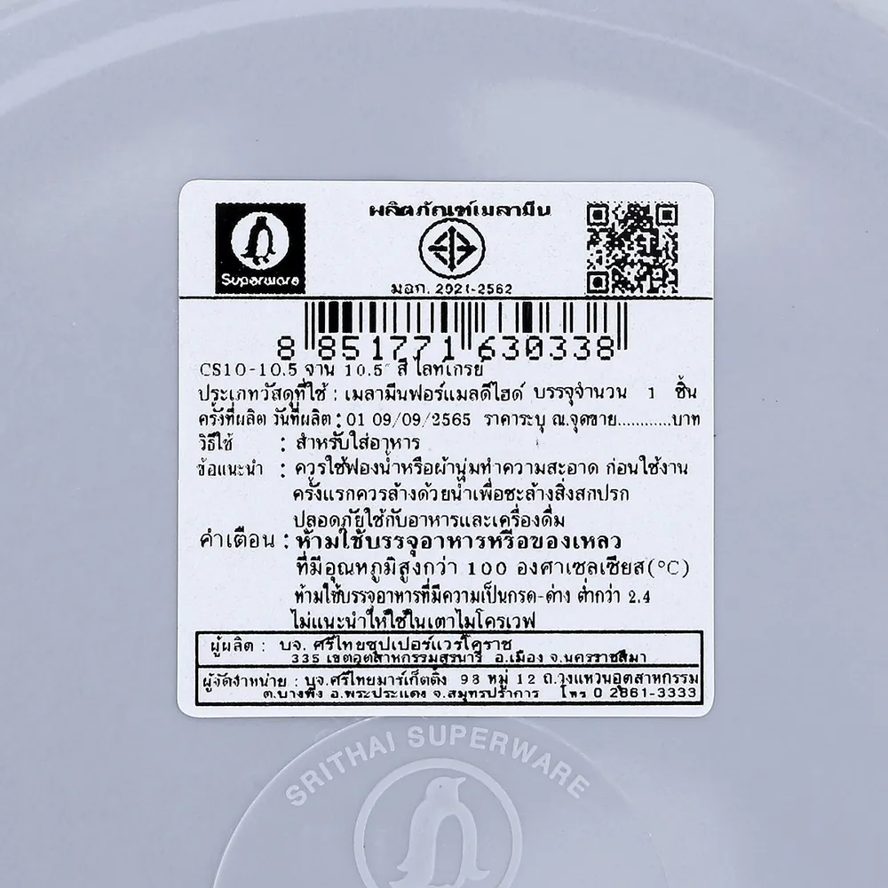 <p>ซุปเปอร์แวร์ จาน รุ่น CS10-10.5<br /><br />SRITHAI SUPERWARE เรามีชุดภาชนะใส่อาหารที่พร้อมสำหรับทุกมื้อ ไม่ว่าจะเป็นวันธรรมดาหรือโอกาสพิเศษ ด้วยความหลากหลายของการออกแบบจึงให้คุณจัดโต๊ะอาหารในแบบที่คุณต้องการได้ทุกมื้อ ทั้งความทนทาน จัดเก็บง่าย สะดวกกับการใช้งาน<br /><br />- จาน<br />- จานแกงเมลามีนฟอร์แมลดีไฮด์<br />- จานข้าว-จานกับข้าว<br />- ภาชนะใส่อาหาร<br />- รองรับอุณหภูมิได้สูงถึง 100&deg;C<br />- อ่านคำเตือน วิธีใช้ ข้อแนะนำก่อนใช้งาน<br /><br /><strong>เลขที่ มอก.</strong><br />2921-2562<br /><br />*สีของสินค้าอาจมีความแตกต่าง ขึ้นอยู่กับการตั้งค่าของแต่ละหน้าจอ และภาพประกอบใช้เพื่อการโฆษณาเท่านั้น</p>