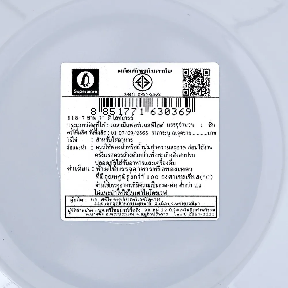 <p>ซุปเปอร์แวร์ ชาม รุ่น B18-7<br /><br />SRITHAI SUPERWARE เรามีชุดภาชนะใส่อาหารที่พร้อมสำหรับทุกมื้อ ไม่ว่าจะเป็นวันธรรมดาหรือโอกาสพิเศษ ด้วยความหลากหลายของการออกแบบจึงให้คุณจัดโต๊ะอาหารในแบบที่คุณต้องการได้ทุกมื้อ ทั้งความทนทาน จัดเก็บง่าย สะดวกกับการใช้งาน<br /><br />- ชาม<br />- ชามเมลามีนฟอร์แมลดีไฮด์<br />- ชามข้าว-จานกับข้าว<br />- ภาชนะใส่อาหาร<br />- รองรับอุณหภูมิได้สูงถึง 100&deg;C<br />- อ่านคำเตือน วิธีใช้ ข้อแนะนำก่อนใช้งาน<br /><br /><strong>เลขที่ มอก.</strong><br />2921-2562<br /><br />*สีของสินค้าอาจมีความแตกต่าง ขึ้นอยู่กับการตั้งค่าของแต่ละหน้าจอ และภาพประกอบใช้เพื่อการโฆษณาเท่านั้น</p>
