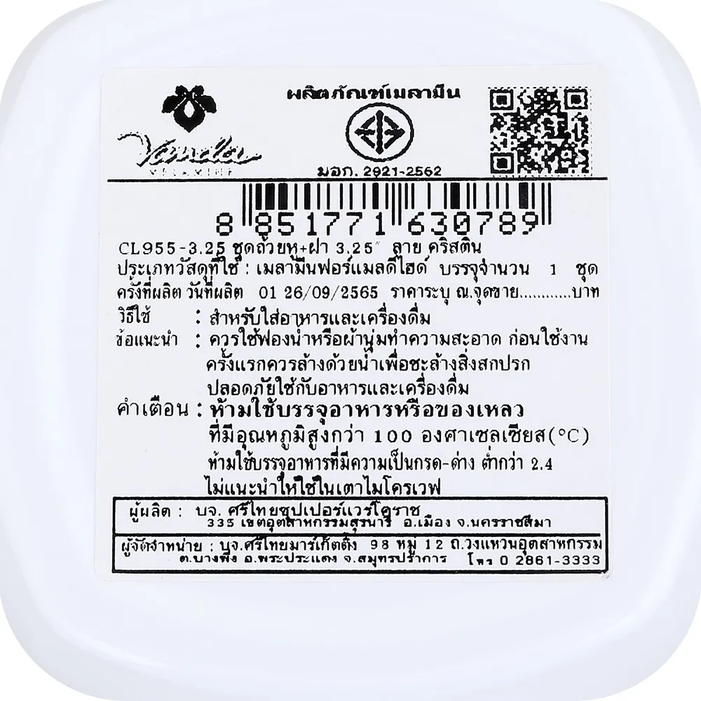 ซุปเปอร์แวร์ ชุดถ้วยหู+ฝา ลายคริสติน รุ่น CL955 ขนาด 3.25"