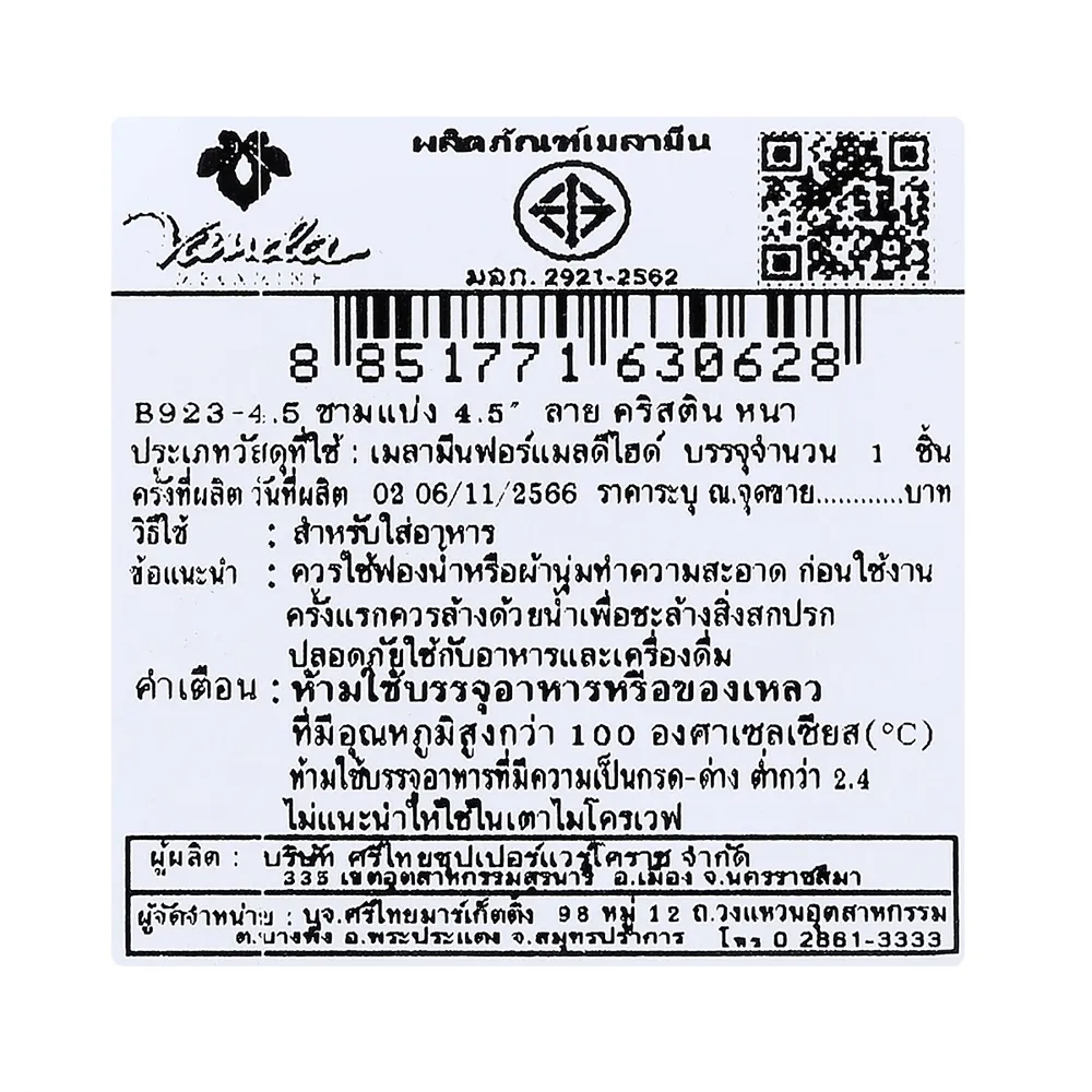 ซุปเปอร์แวร์ ชามแบ่งลายคริสตินหนา รุ่น B923 ขนาด 4.5"
