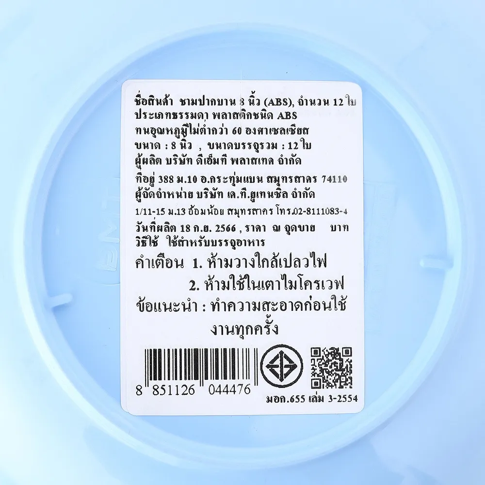 ชามปากบานพลาสติกชนิด ABS ขนาด 8 นิ้ว สีฟ้า แพ็ค 12 ใบ