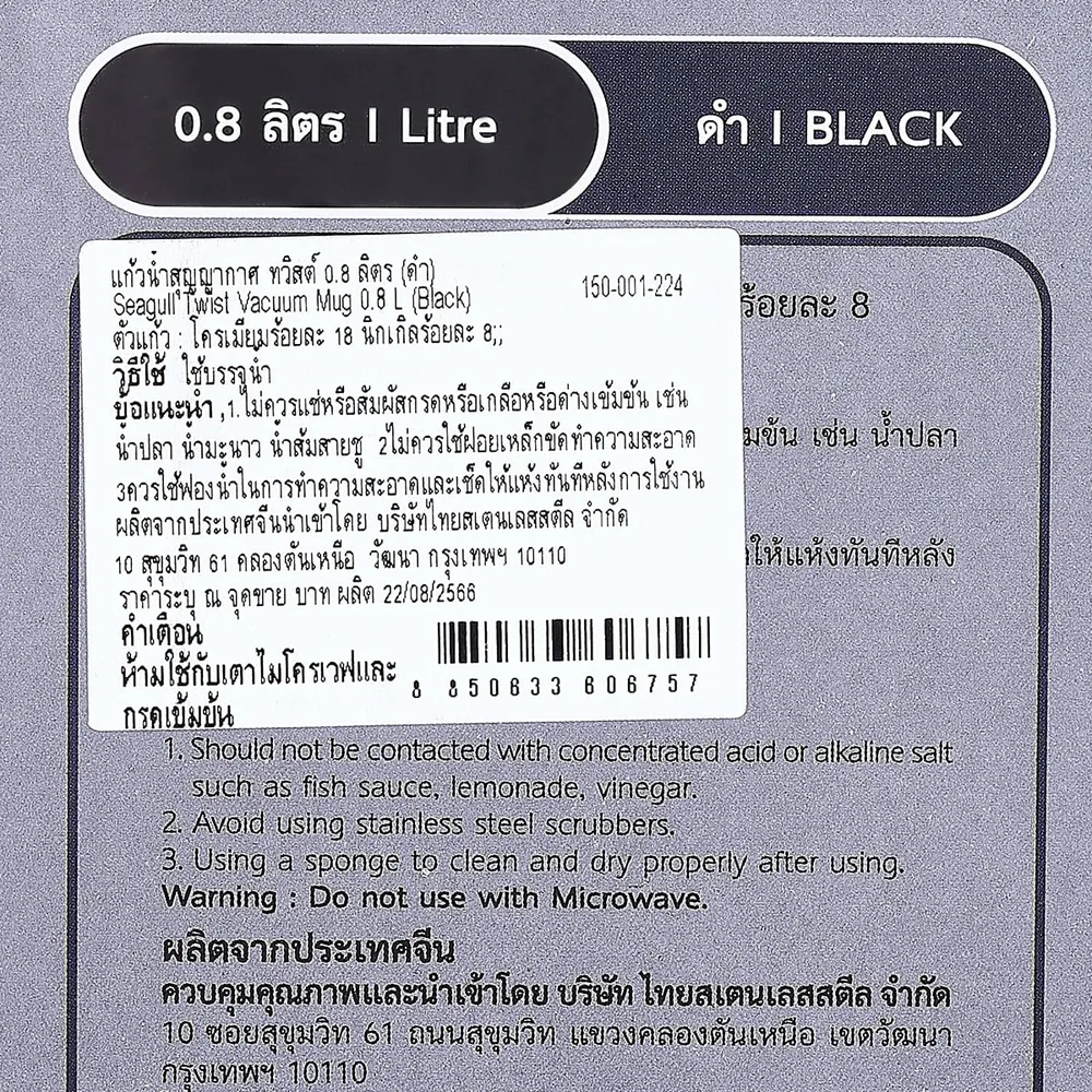 นกนางนวล แก้วน้ำสุญญากาศทวิสต์ ขนาด 0.8 ล. สีดำ