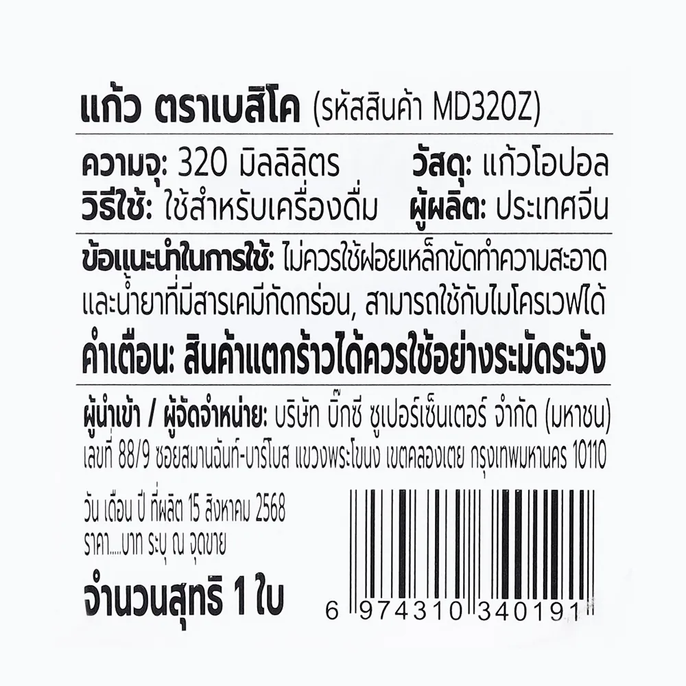 <p>เบสิโค แก้วมัคโอปอล ขนาด 320 มล. รุ่น MD320Z สีขาว<br />