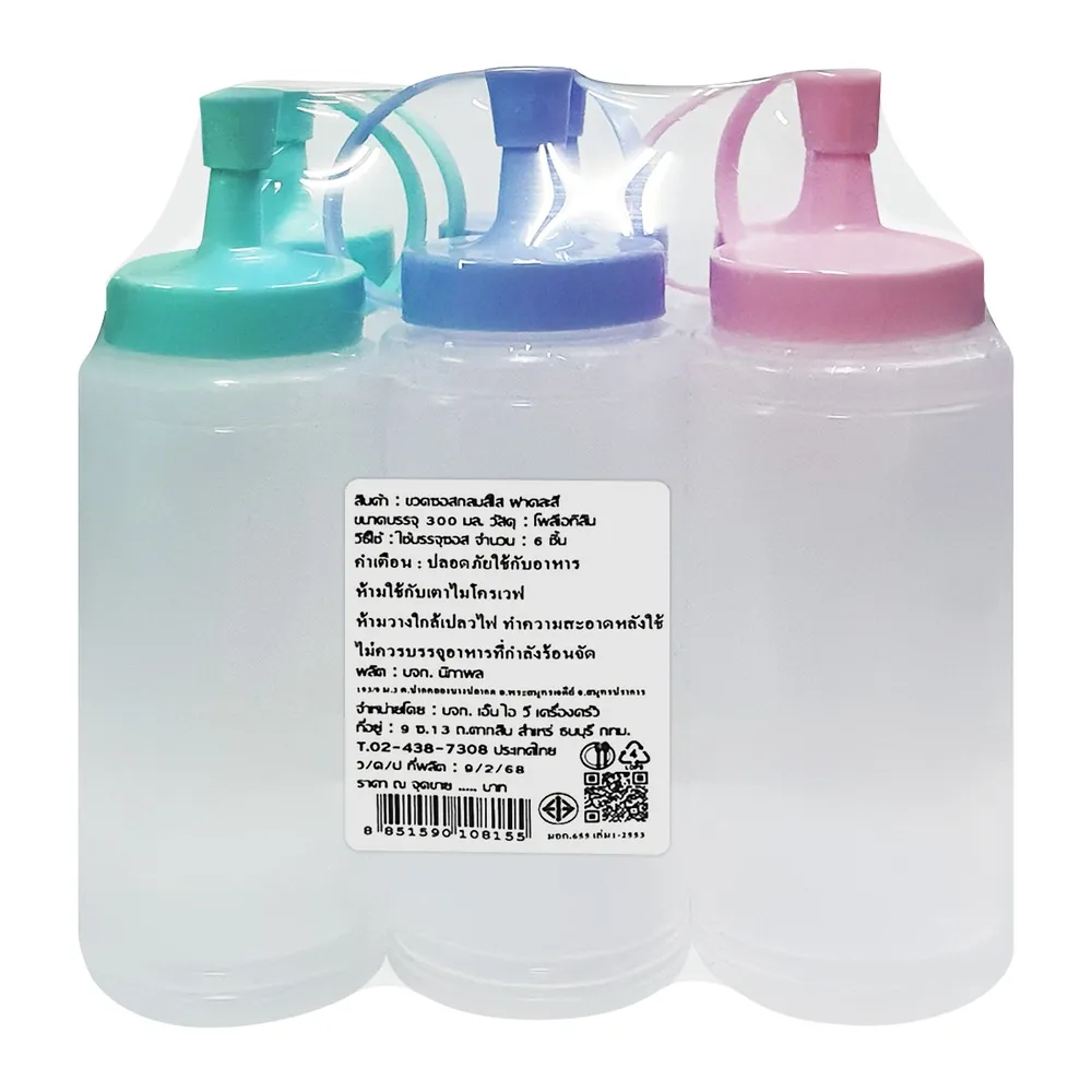เอ็นไอวี เครื่องครัว ขวดซอสกลมสีใส 300 มล. แพ็ค 6 ฝาคละสี