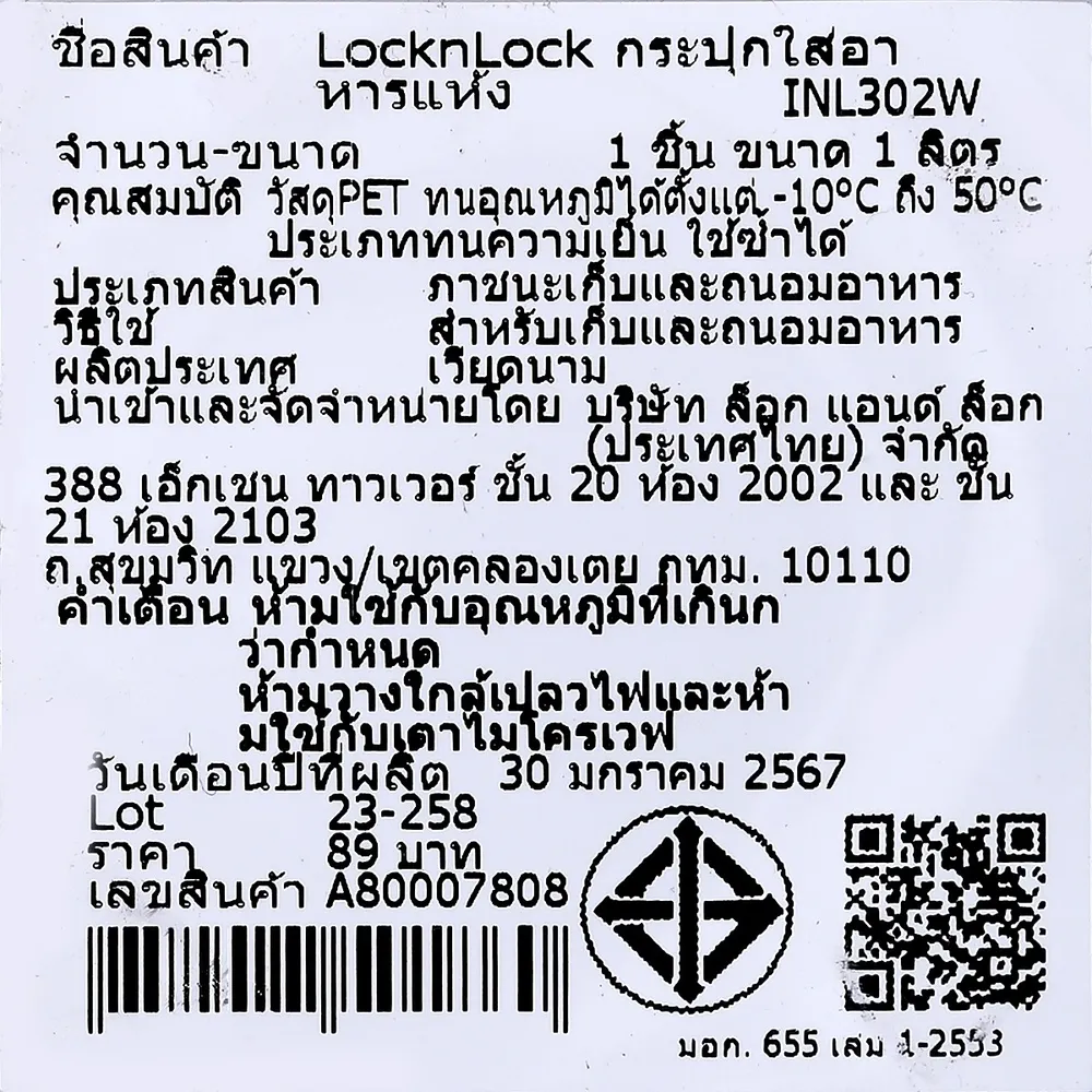 ล็อกแอนด์ล็อก กระปุกใส่อาหารแห้ง รุ่น INL302W ขนาด 1 ล.
