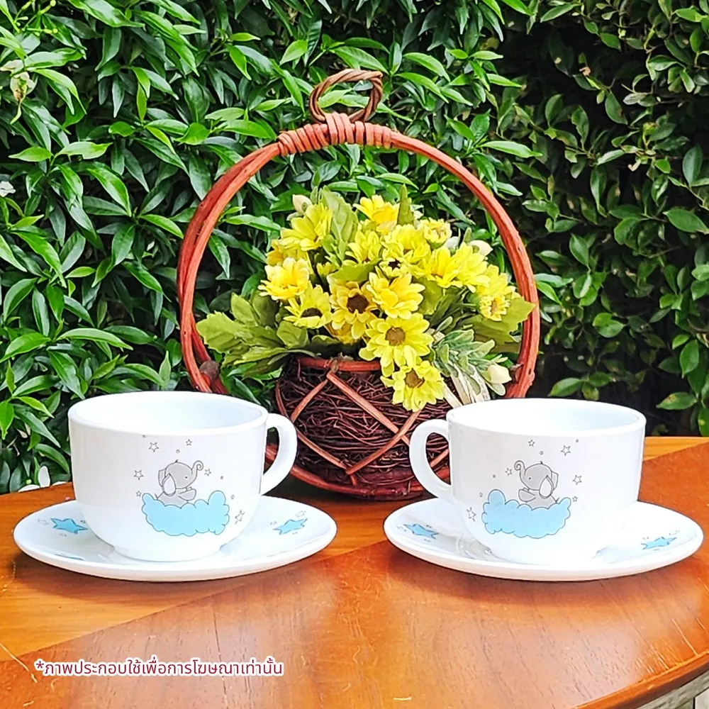 - ชุดกาแฟแก้ว เนื้อโอปอล ลายช้าง 4 ชิ้น 2 ที่<br />