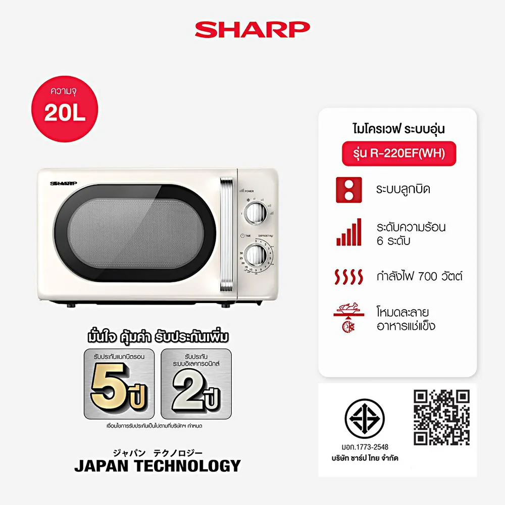 ชาร์ป ไมโครเวฟ 700 วัตต์ รุ่น R-220EF(WH) 20 ล. สีครีม