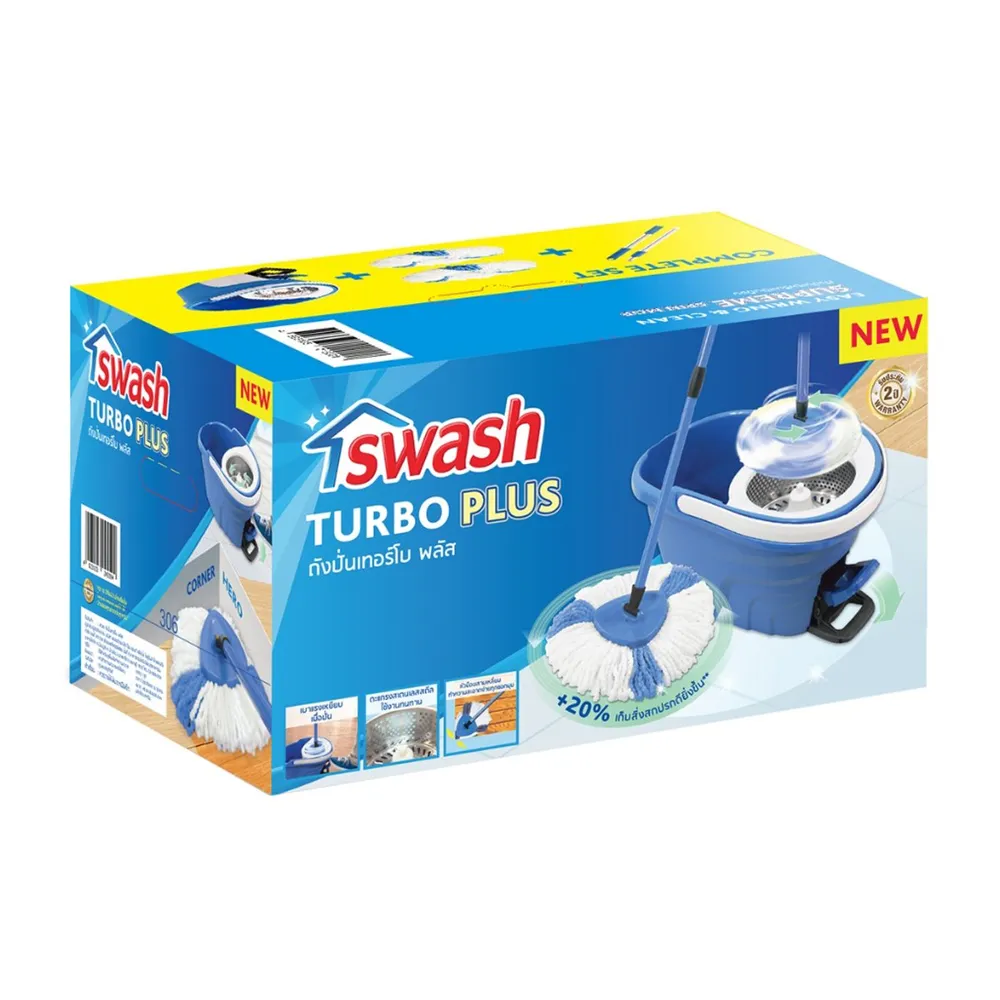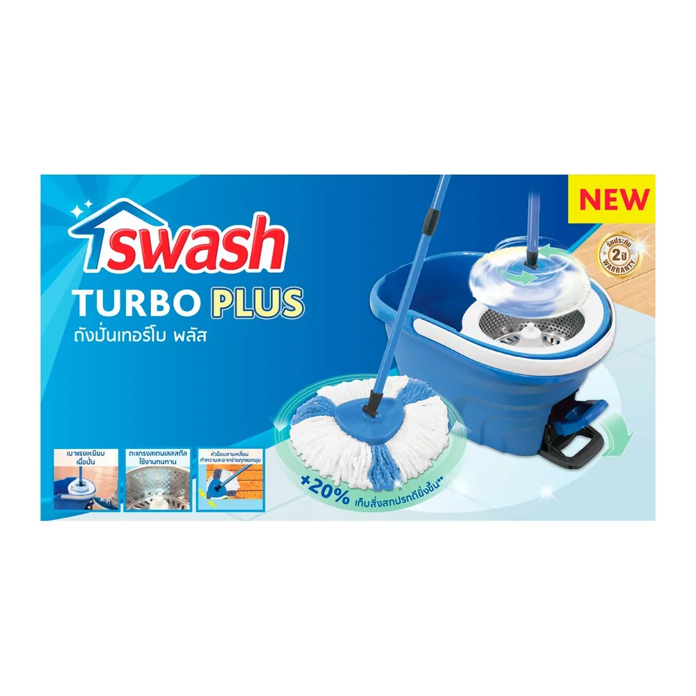 ปฏิวัติการทำความสะอาดบ้านด้วยสวอช ถังปั่นเทอร์โบ พลัส! เส้นใยคู่พิเศษซึมซับเยี่ยม ทำความสะอาดเหนือชั้น หัวม็อบสามเหลี่ยมเข้าถึงทุกซอกมุม เบาแรง ทนทาน เคลื่อนย้ายสะดวก พร้อมช่วยยกระดับมาตรฐานความสะอาดบ้านคุณแล้ววันนี้<br />