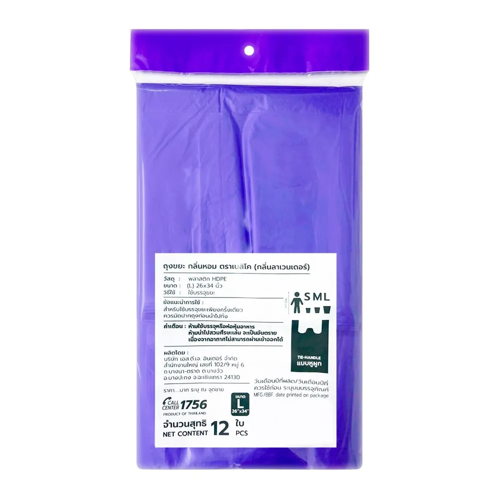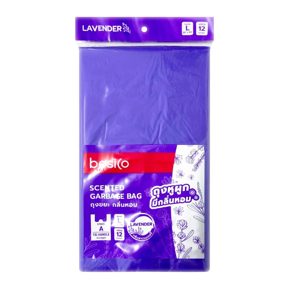 เบสิโค ถุงขยะหูผูก กลิ่นลาเวนเดอร์ 26 x 34 นิ้ว แพ็ค 12 ใบ