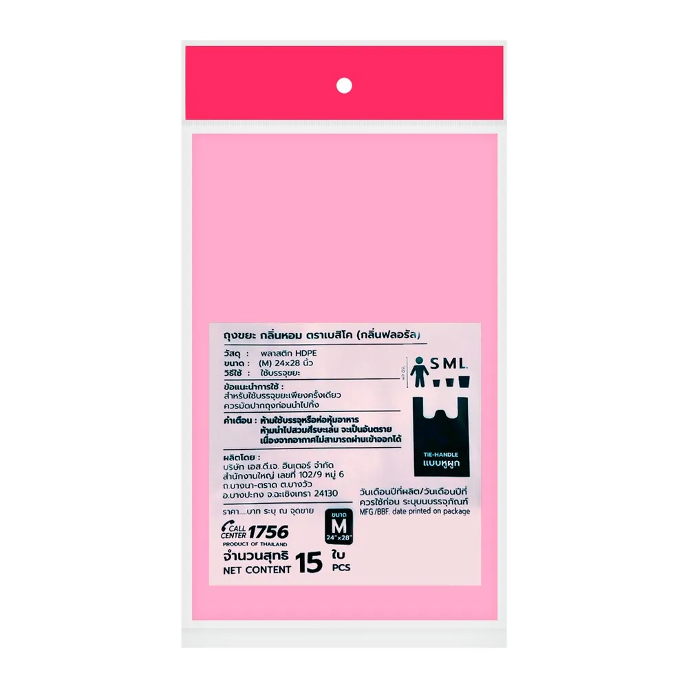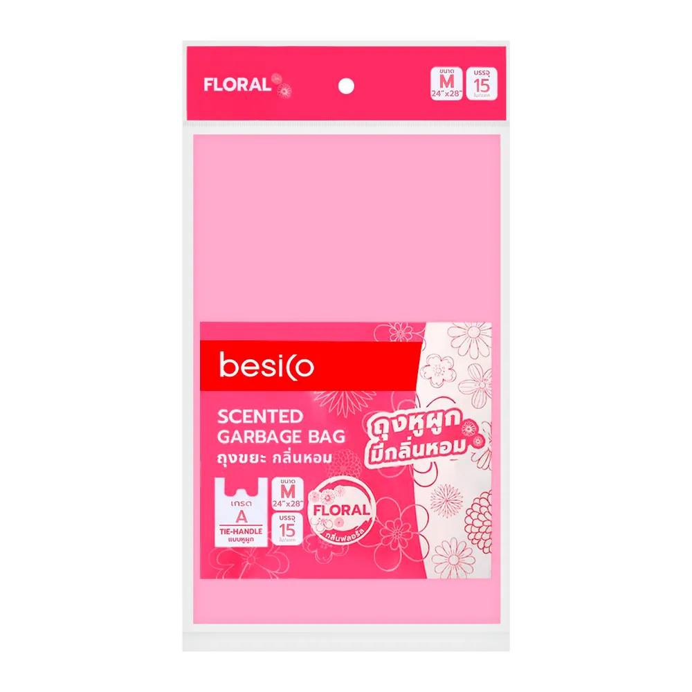 เบสิโค ถุงขยะหูผูก กลิ่นฟลอร่าดีลักส์ 24 x 28 นิ้ว แพ็ค 15 ใบ