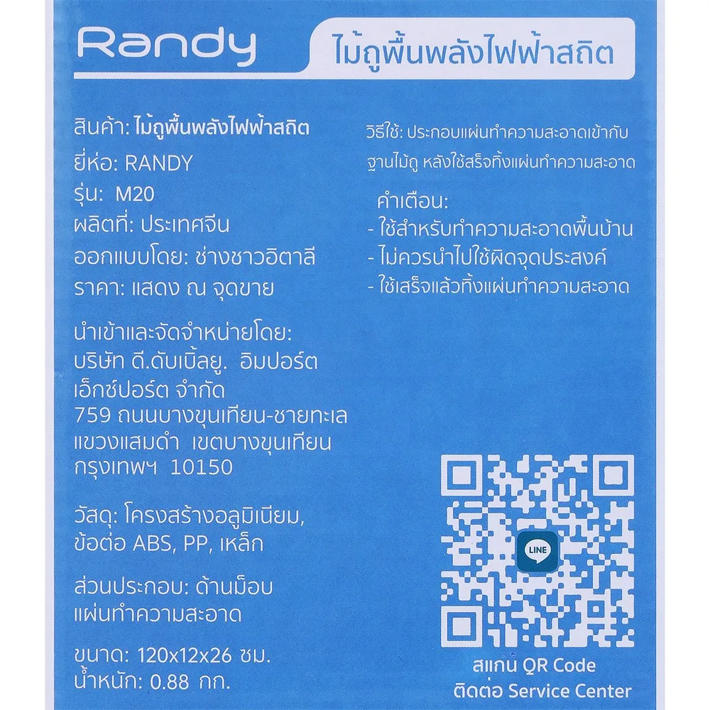 แรนดี้ ไม้ถูพื้นพลังไฟฟ้าสถิต 3in1 รุ่น M20