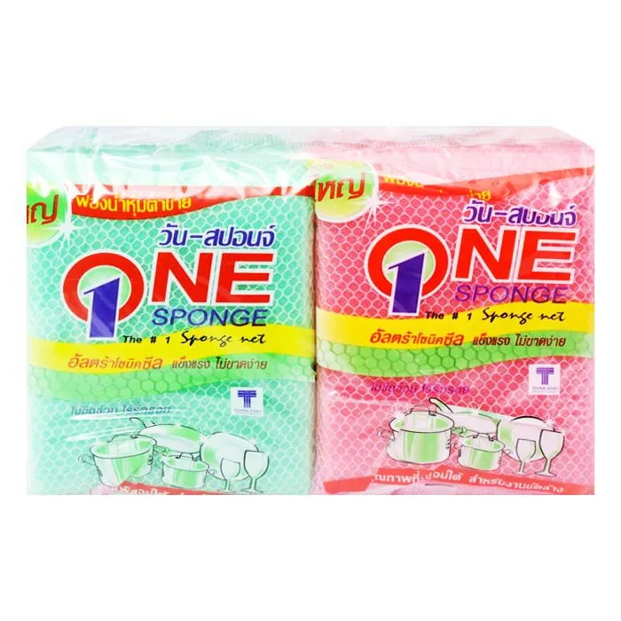 วัน-สปอนจ์ ฟองน้ำหุ้มตาข่าย ที่เหมาะสำหรับการใช้ล้างภาชนะเครื่องแก้ว หรือสิ่งของที่ไม่ต้องการให้เกิดรอย ด้วยขนาดที่กะทัดรัด จึงเหมาะสำหรับภาชนะทุกรูปทรง อีกทั้งใยตาข่ายยังยากต่อการฉีกขาด ทนทานต่อการใช้งานสำหรับการขัดเช็ดถูทำความสะอาดทั่วไป<br />