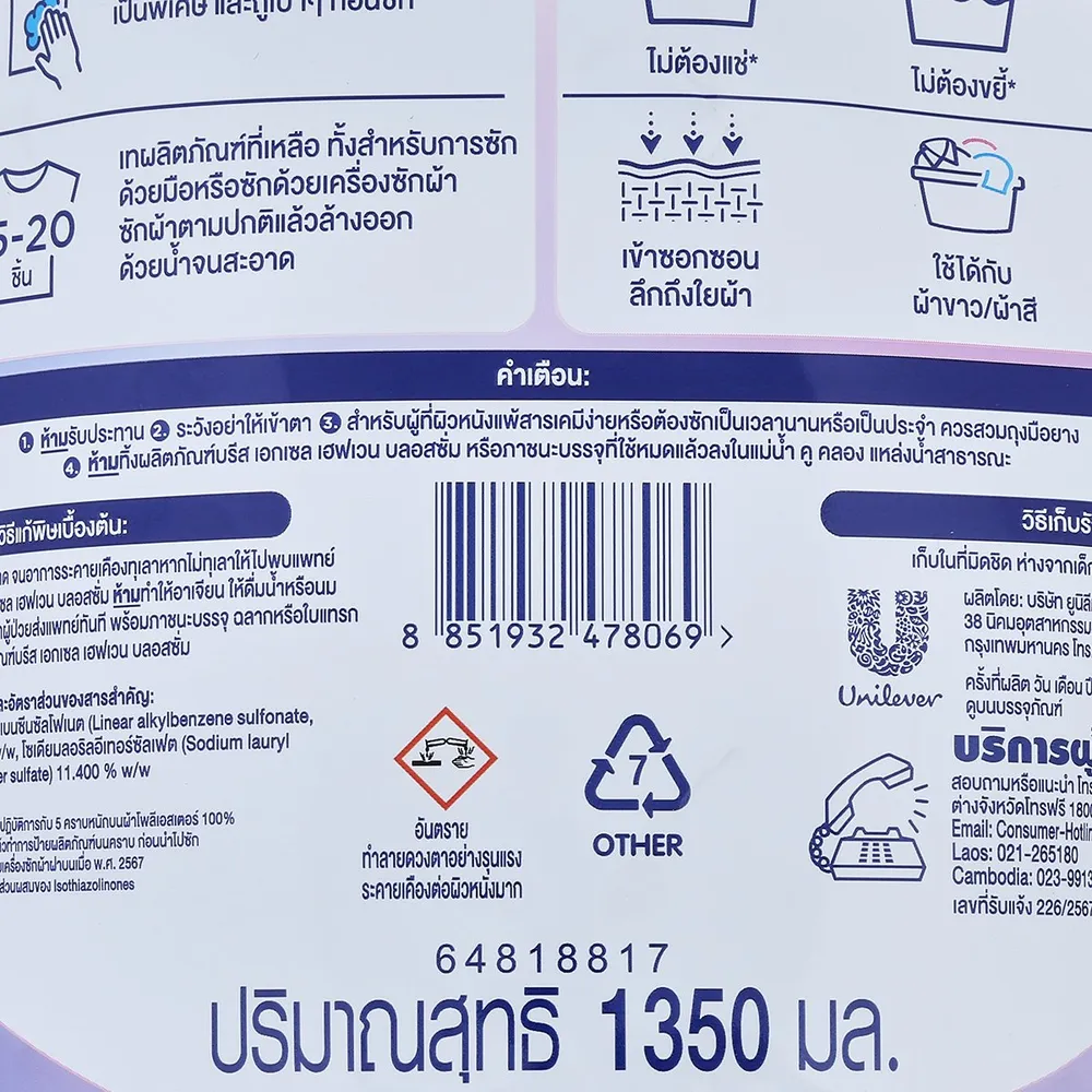 - ขจัดคราบหนักและสลายกลิ่นอับได้ตั้งแต่ครั้งแรกที่ซัก<br />
