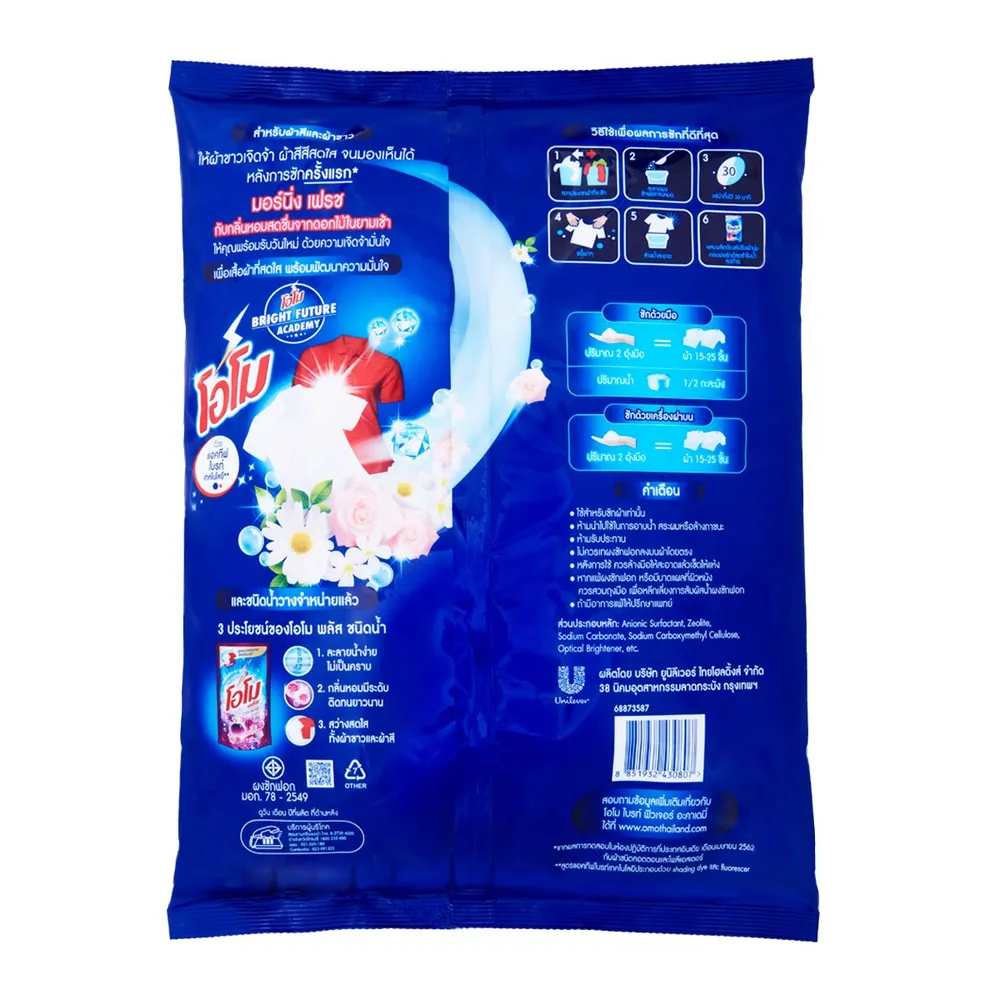 ซักแค่ 1 ครั้ง ผ้าสะอาด สดใส หอม ด้วย โอโม มอร์นิ่ง เฟรช ผงซักฟอก สูตรมาตรฐาน สำหรับซักมือและเครื่องฝาบน ผลิตภัณฑ์ผงซักฟอกคุณภาพเยี่ยมจากแบรนด์ โอโม ที่ช่วยซอกซอนเข้าถึงใยผ้า ทำความสะอาดได้อย่างล้ำลึก ใช้ได้ทั้งผ้าขาวและผ้าสี<br />