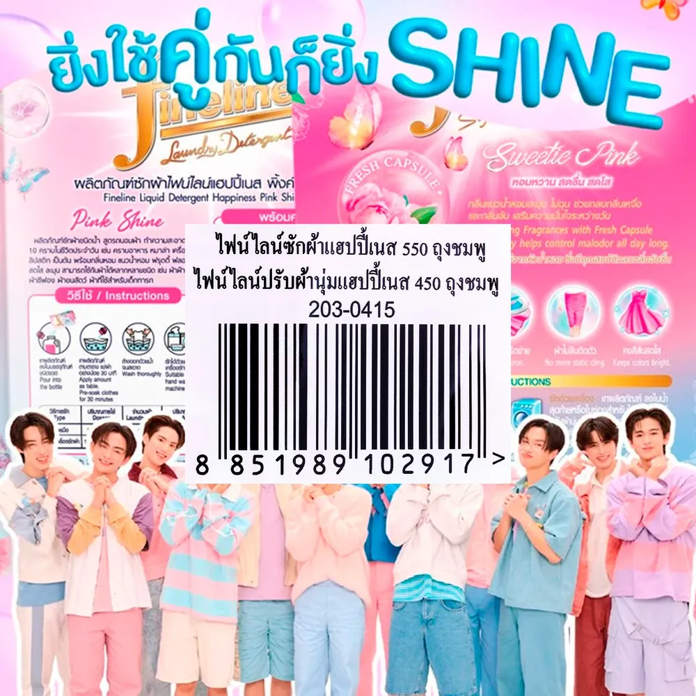 ไฟน์ไลน์ x BUS น้ำยาซักผ้า แฮปปี้เนส พิ้งค์ ชายน์ 550 มล. + น้ำยาปรับผ้านุ่ม แฮปปี้เนส สวีทตี้ พิ้งค์ 450 มล.