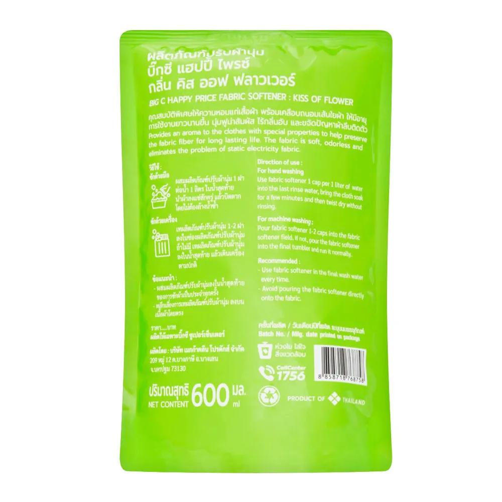 บิ๊กซี แฮปปี้ ไพรซ์ น้ำยาปรับผ้านุ่ม กลิ่นคิส ออฟ ฟลาวเวอร์ 600 มล.