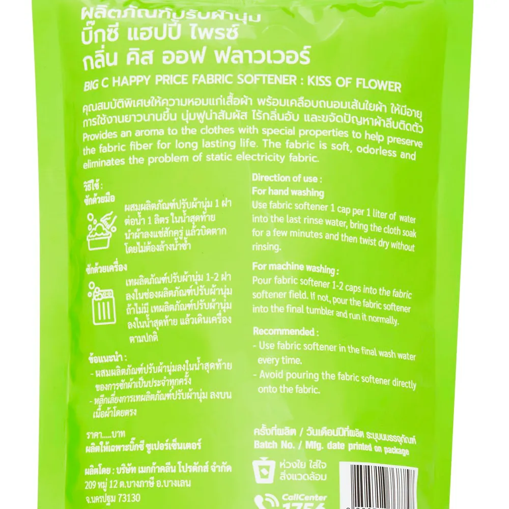 <p>บิ๊กซี แฮปปี้ ไพรซ์ น้ำยาปรับผ้านุ่ม กลิ่นคิส ออฟ ฟลาวเวอร์<br />