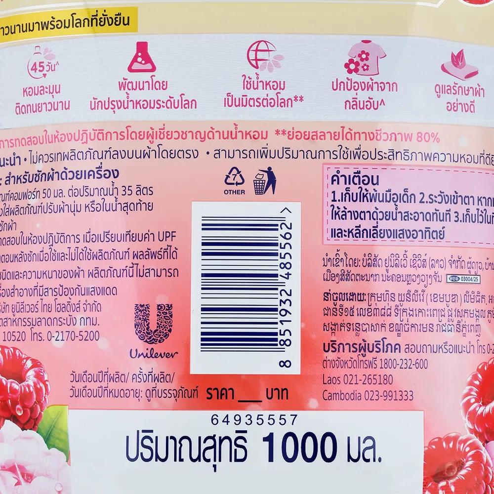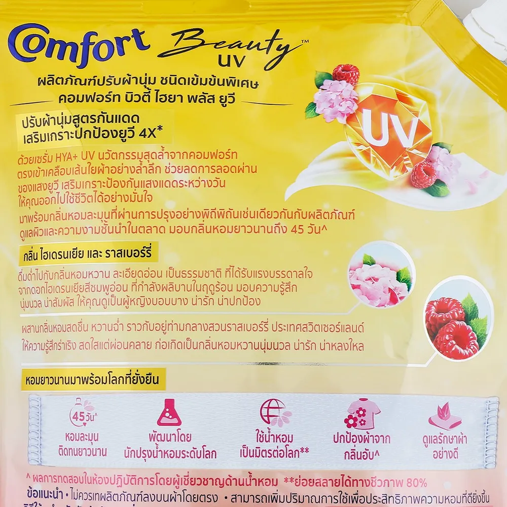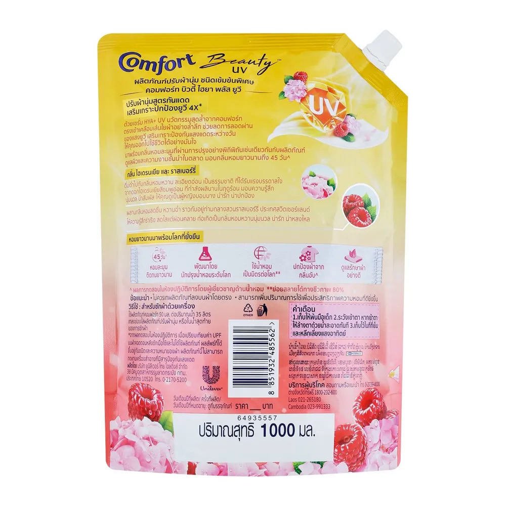 คอมฟอร์ท บิวตี้ ไฮยา พลัส ยูวี ผลิตภัณฑ์ปรับผ้านุ่ม กลิ่นไฮเดรนเยีย และ ราสเบอร์รี่ 1000 มล.