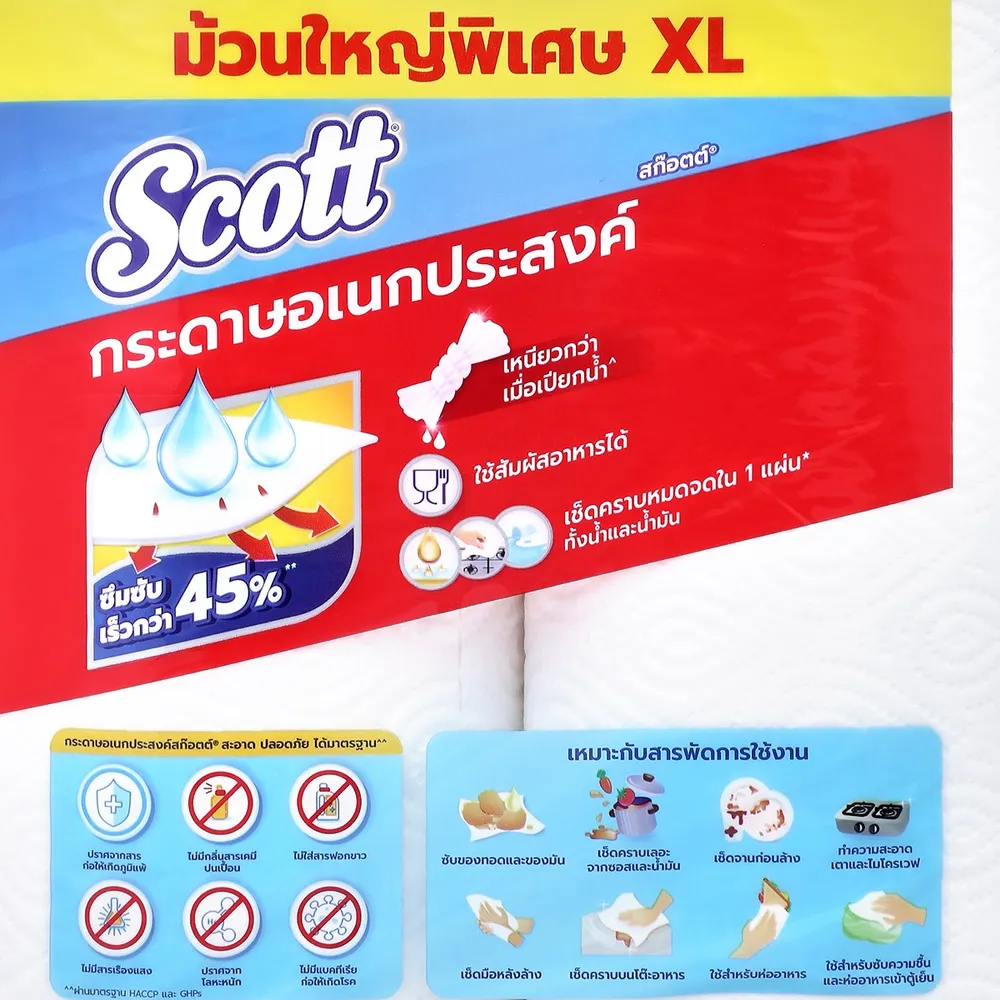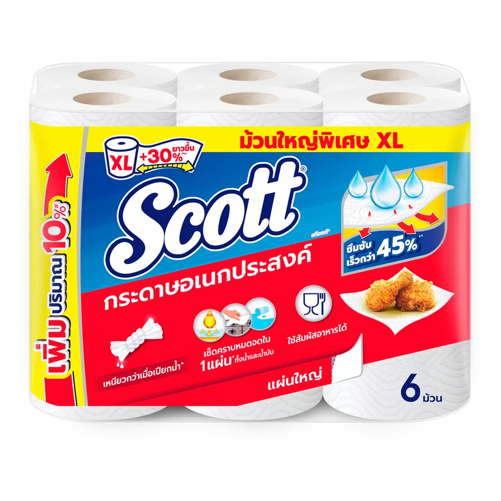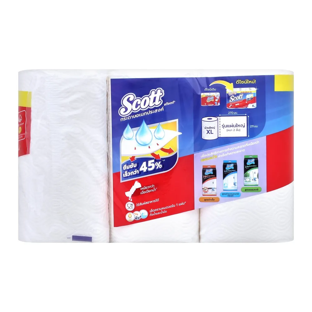 รักษาความสะอาดในงานครัวของคุณได้สะดวกด้วยกระดาษอเนกประสงค์ สก๊อตต์ ทาวเวล ผลิตจากเยื่อกระดาษคุณภาพ ให้ความสะอาดเหนือชั้น และยังสามารถซับน้ำมันจากอาหารทอดได้ดี ปลอดภัยกับการสัมผัสอาหาร<br />