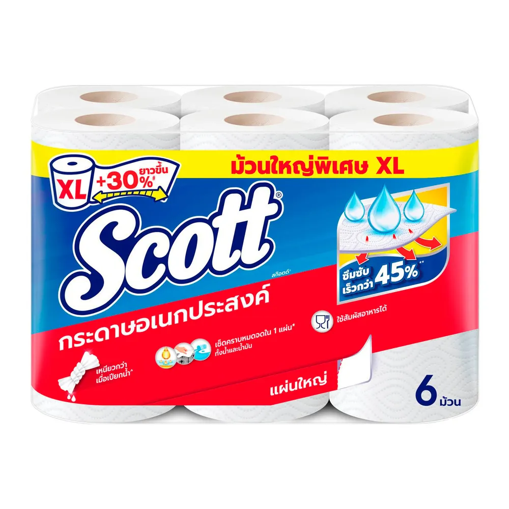 สก๊อตต์ ทาวเวล กระดาษอเนกประสงค์ รุ่นแผ่นใหญ่ แพ็ค 6