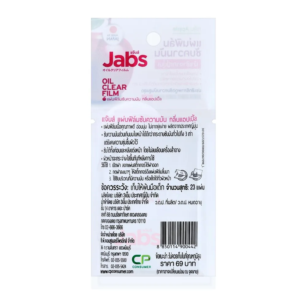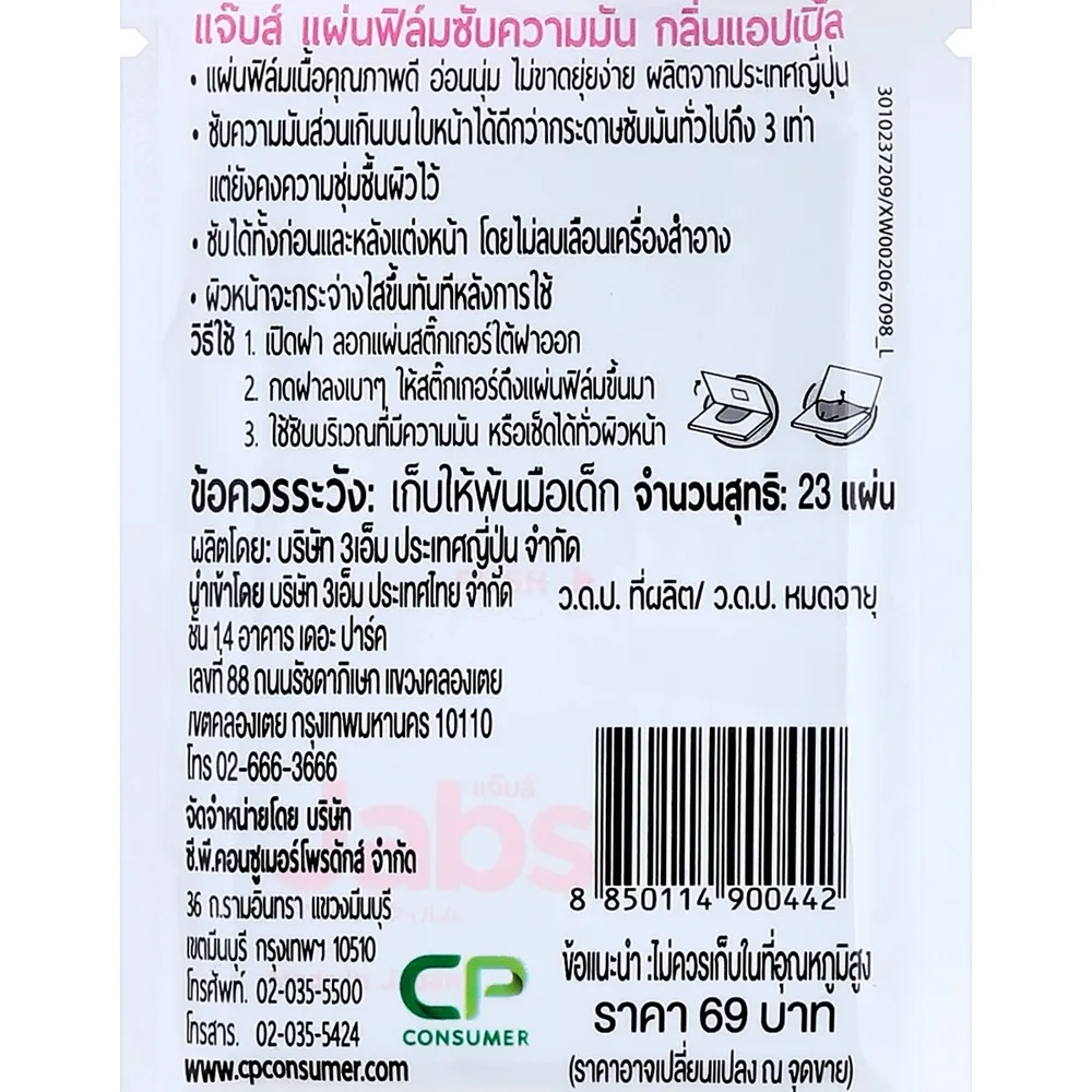 แจ๊บส์ แผ่นฟิล์มซับความมัน กลิ่นแอปเปิ้ล 23 แผ่น