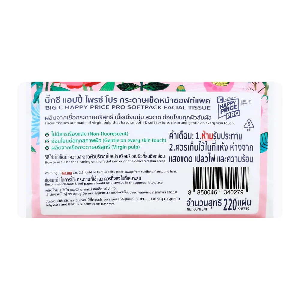 บิ๊กซี แฮปปี้ ไพรซ์ โปร กระดาษเช็ดหน้าซอฟท์แพค 220 แผ่น