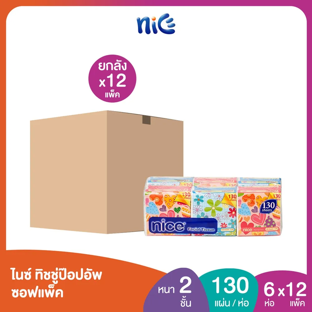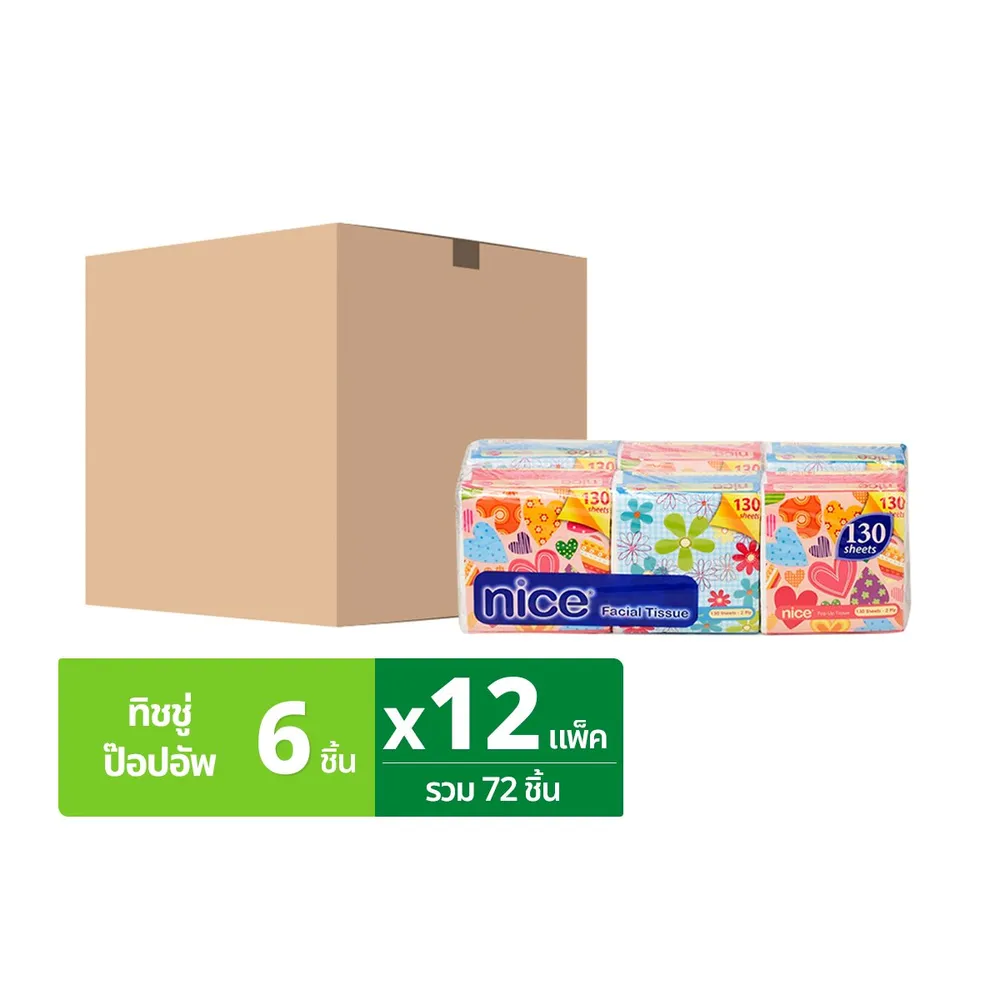 ไนซ์ กระดาษทิชชู่ป๊อปอัพ 130 แผ่น 6 ห่อ x 12 แพ็ค