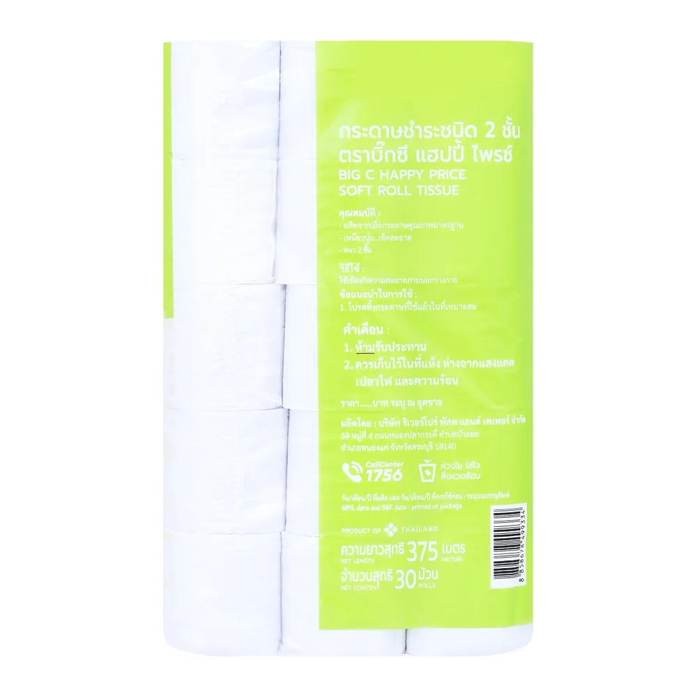 บิ๊กซี แฮปปี้ ไพรซ์ กระดาษชำระ ผลิตภัณฑ์กระดาษชำระ คุณภาพเยี่ยมจากแบรนด์ แฮปปี้ไพรซ์ ที่ผลิตจากวัสดุเยื่อกระดาษคุณภาพดี กระดาษมีความหนาถึง 2 ชั้น ให้ทั้งความเหนียวและความนุ่มได้เป็นอย่างดี สามารถใช้เช็ดทำความสะอาดภายในบ้านได้ตามความต้องการ<br />