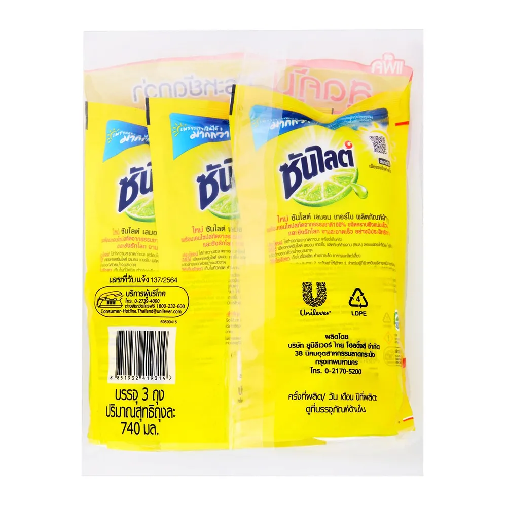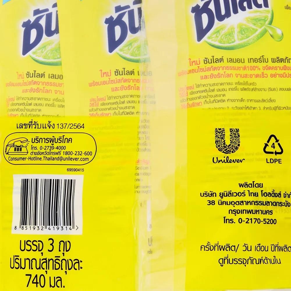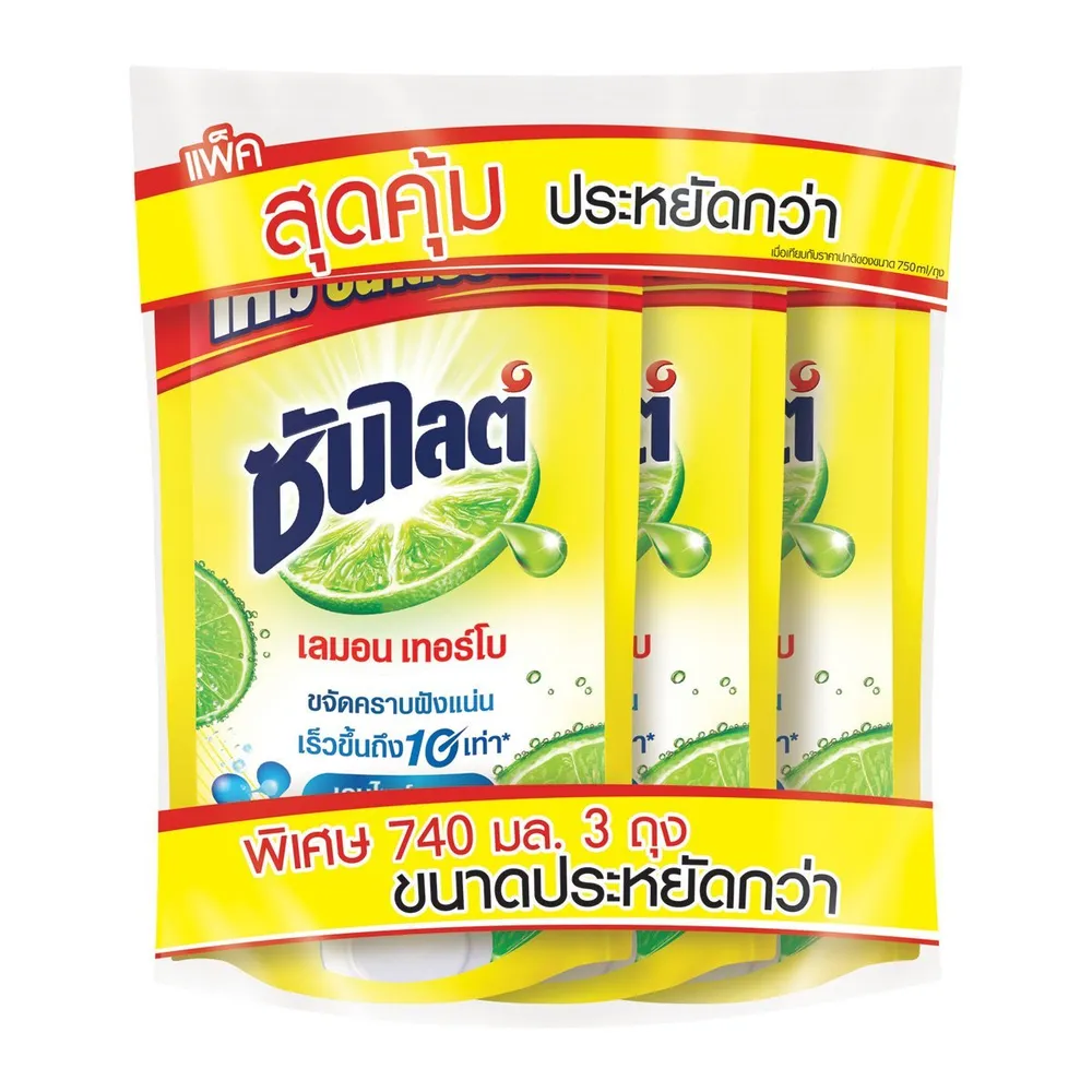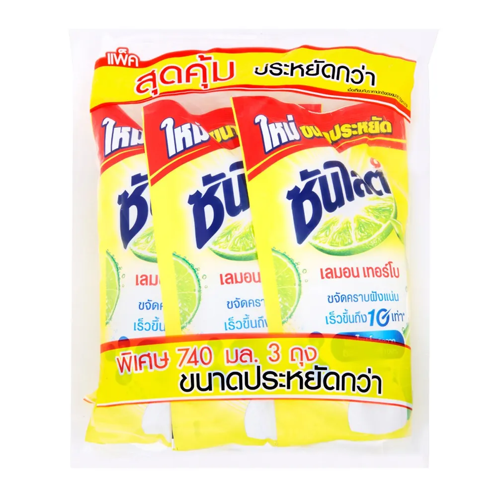 ซันไลต์ เลมอน เทอร์โบ น้ำยาล้างจาน 740 มล. แพ็ค 3