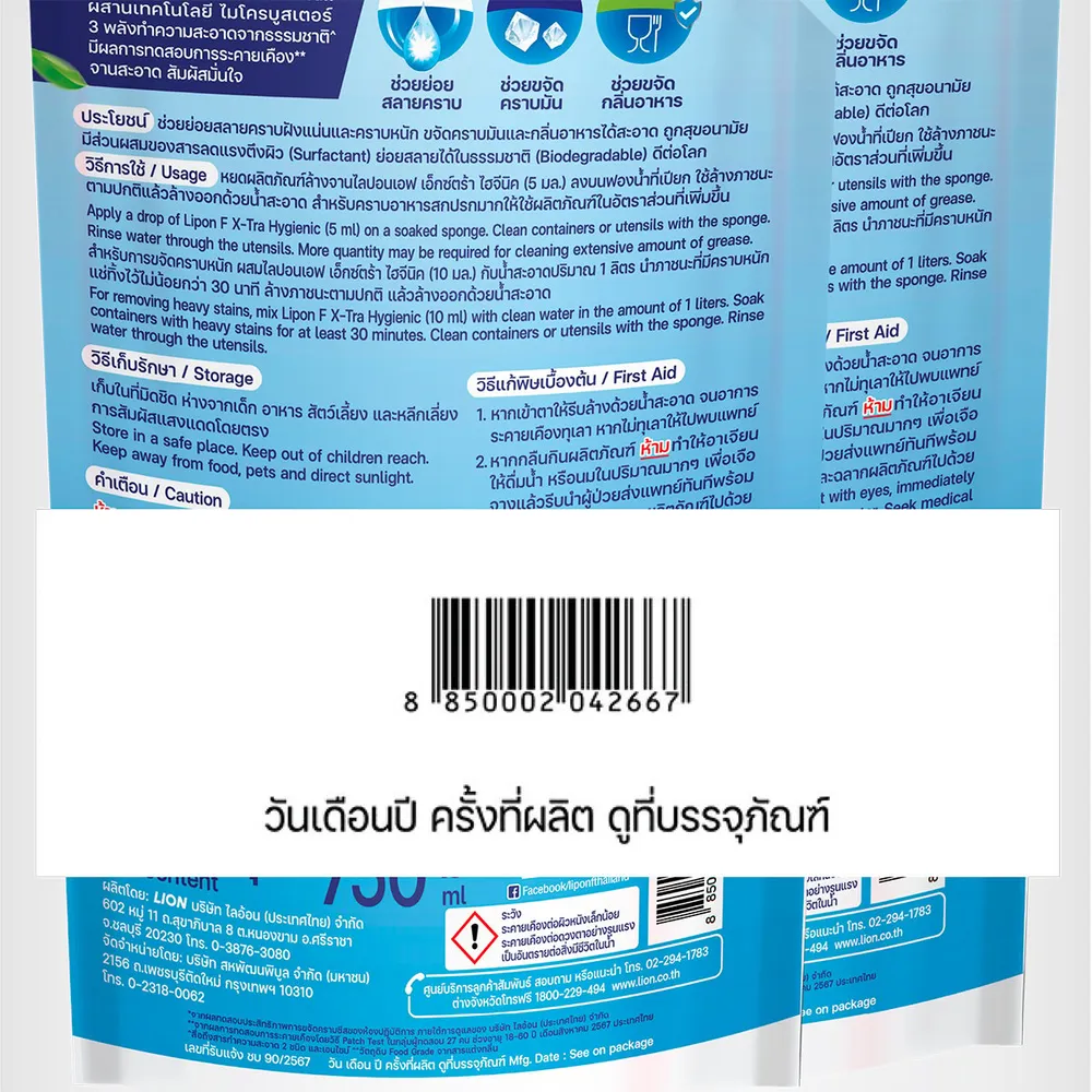 ไลปอนเอฟ ผลิตภัณฑ์ล้างจาน สูตรเอ็กซ์ตร้า ไฮจีนิค 750 มล. x 2 ชิ้น