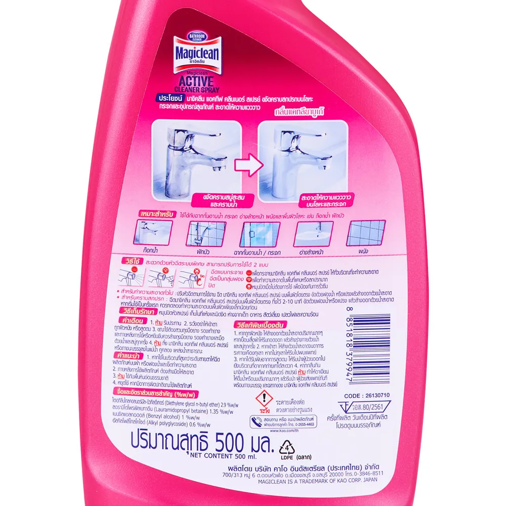 มาจิคลีน น้ำยาทำความสะอาดห้องน้ำ กลิ่นฟรีเซีย เทนเดอร์ แบบสเปรย์ 500 มล.