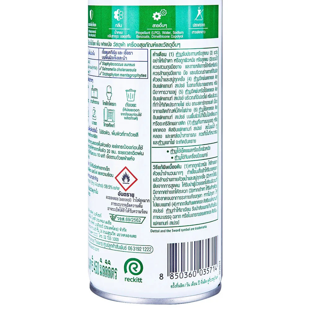 <p>เดทตอล สเปรย์ฆ่าเชื้อโรคสำหรับพื้นผิว กลิ่นซากุระ บลอสซั่ม<br /> <br /> ฆ่าเชื้อโรคพื้นผิวภายในบ้านด้วย เดทตอล สเปรย์ฆ่าเชื้อโรคสำหรับพื้นผิว ผลิตภัณฑ์สเปรย์คุณภาพจากแบรนด์ เดทตอล ที่เหมาะสำหรับการนำไปฆ่าเชื้อโรคบริเวณต่างๆ ภายในบ้าน เช่น อ่างล้างมือ ห้องน้ำ โถรองนั่ง ถังขยะ อ่างล้างจาน สามารถฆ่าได้ทั้งเชื้อแบคทีเรีย เชื้อรา เชื้อไวรัส<br /> <br /> - เดทตอล สเปรย์ฆ่าเชื้อโรคสำหรับพื้นผิว กลิ่นซากุระ บลอสซั่ม<br /> - สเปรย์ฆ่าเชื้อโรคสำหรับพื้นผิว จากเดทตอล<br /> - ฆ่าเชื้อแบคทีเรีย และเชื้อรา พร้อมมีผลทดสอบการฆ่าเชื้อไวรัสโควิด 19<br /> - สำหรับทำความสะอาดพื้น ฝาผนัง เครื่องสุขภัณฑ์ และวัสดุอื่นๆ ตามต้องการ<br /> - ใช้ได้กับบริเวณต่างๆ ภายในบ้าน โทรศัพท์ อ่างล้างมือ ห้องน้ำ โถรองนั่ง บริเวณอาบน้ำ ห้องครัว ถังขยะ อ่างล้างจาน บริเวณใต้อ่างล้างจาน เป็นต้น<br /> <br /> <strong>วิธีใช้</strong><br /> - หลังทำความสะอาดพื้นผิวแล้ว เขย่ากระป๋องก่อนใช้<br /> - สเปรย์ผลิตภัณฑ์ให้ห่างจากพื้นผิว 20 ซม.<br /> - ระยะเวลาฉีดพ่น 5 วินาที ทิ้งไว้ให้เปียกนาน 10 นาที<br /> - เช็ดตามด้วยผ้าแห้งสะอาดอีกครั้ง<br /> <br /> <strong>เลขที่ใบรับจดแจ้ง</strong><br /> วอส.69/2562<br /> <br /><span style="color: #ff0000;">*บริษัทฯ ขอสงวนสิทธิ์ในการปรับเปลี่ยนราคาจำหน่ายและโปรโมชั่น รวมถึงแพ็คเกจและปริมาณสินค้าจากผู้ผลิตได้ตามความเหมาะสม โดยไม่จำเป็นต้องแจ้งให้ทราบล่วงหน้า</span><br /><br /> *ภาพประกอบใช้เพื่อการโฆษณาเท่านั้น</p>
