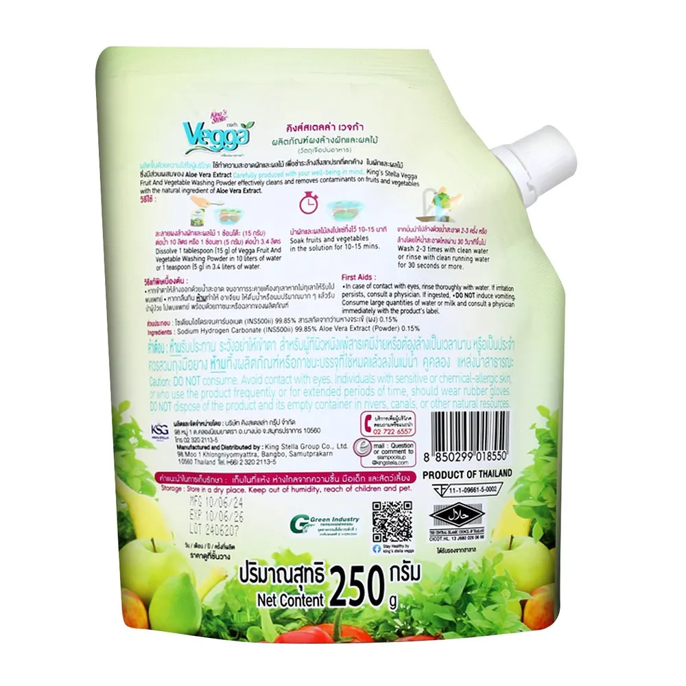 คิงส์สเตลล่า เวจก้า ผลิตภัณฑ์ผงล้างผักและผลไม้ 250 ก.