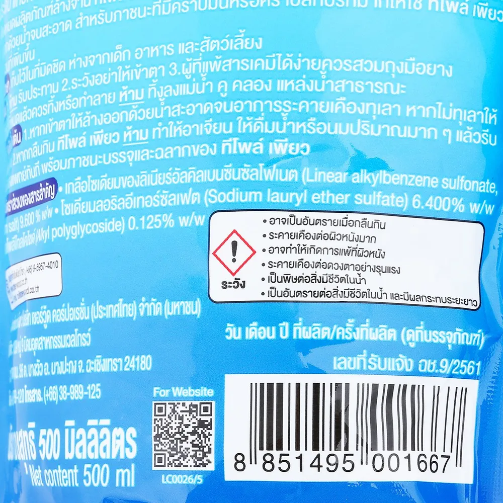 ทีโพล์ เพียว น้ำยาล้างจาน ถุงเติม 500 มล.