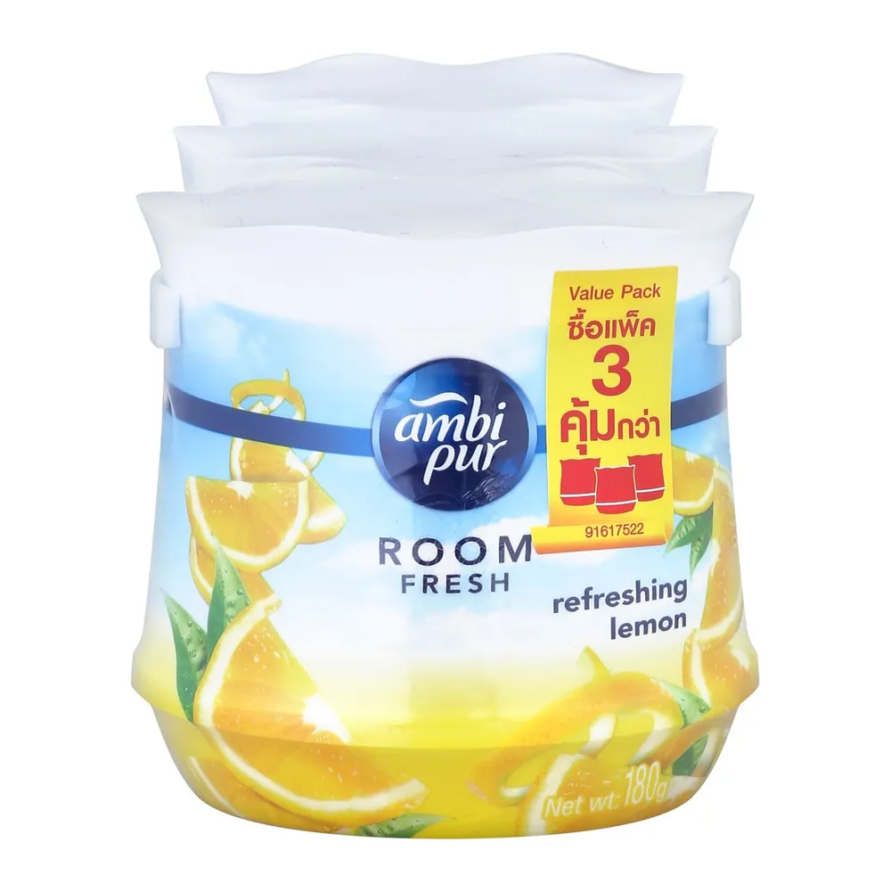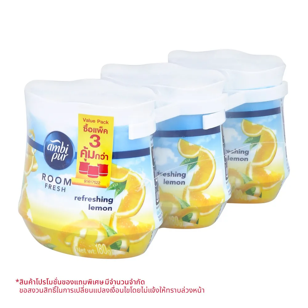 แอมบิเพอร์ รูมเฟรช เจลหอมปรับอากาศ กลิ่นรีเฟรชชิ่ง เลมอน 180 ก. แพ็ค 2+1 ชิ้น